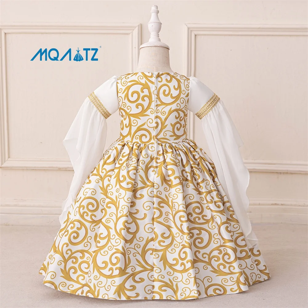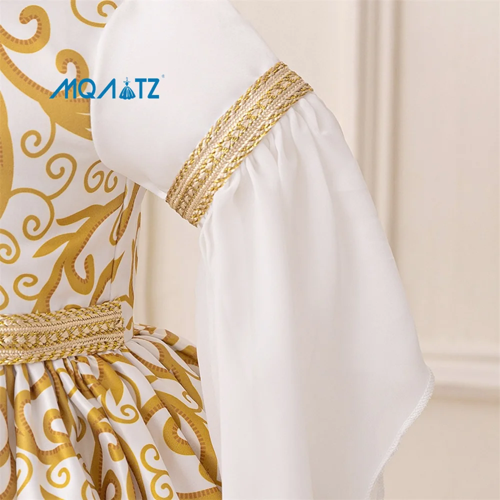 MQATZ New Middle Eastern Muslim Princess Toddler Dress Breathable White Patchwork Design Girls Embossed