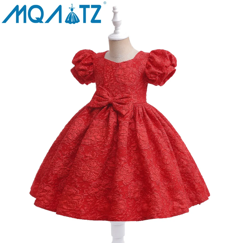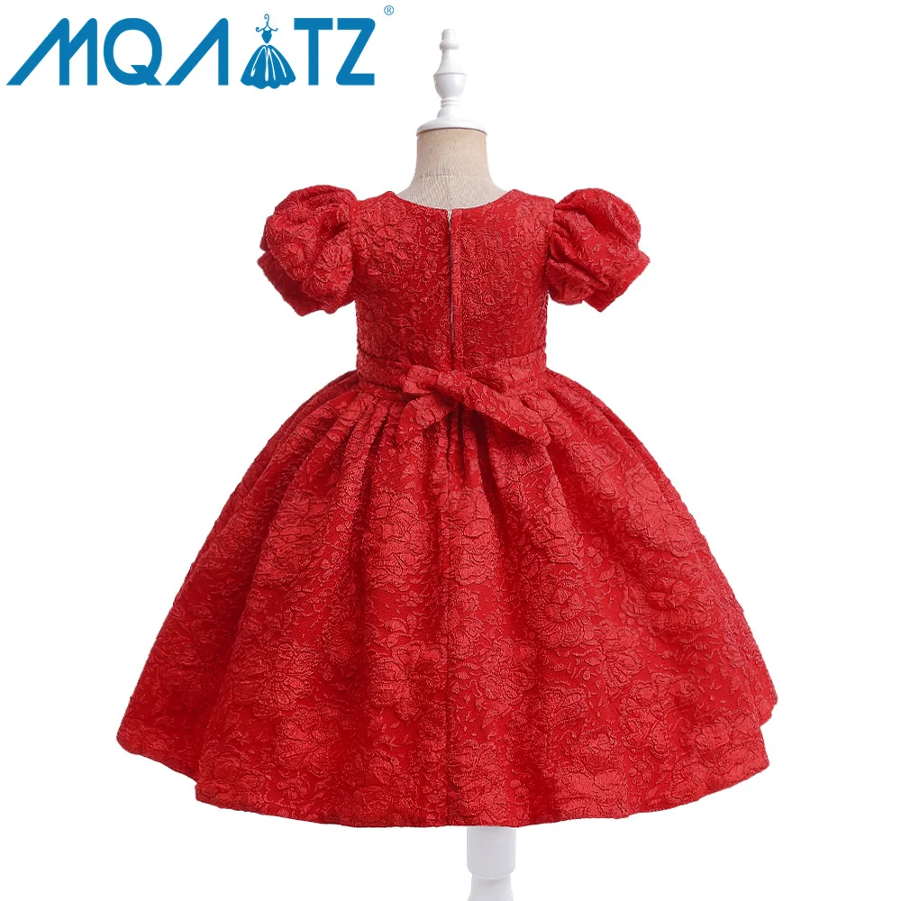 Elegant Girls Formal Wedding Party Dress Autumn Short-Sleeved Princess Style Lace Solid Woolen Fabric Children's Clothing Set