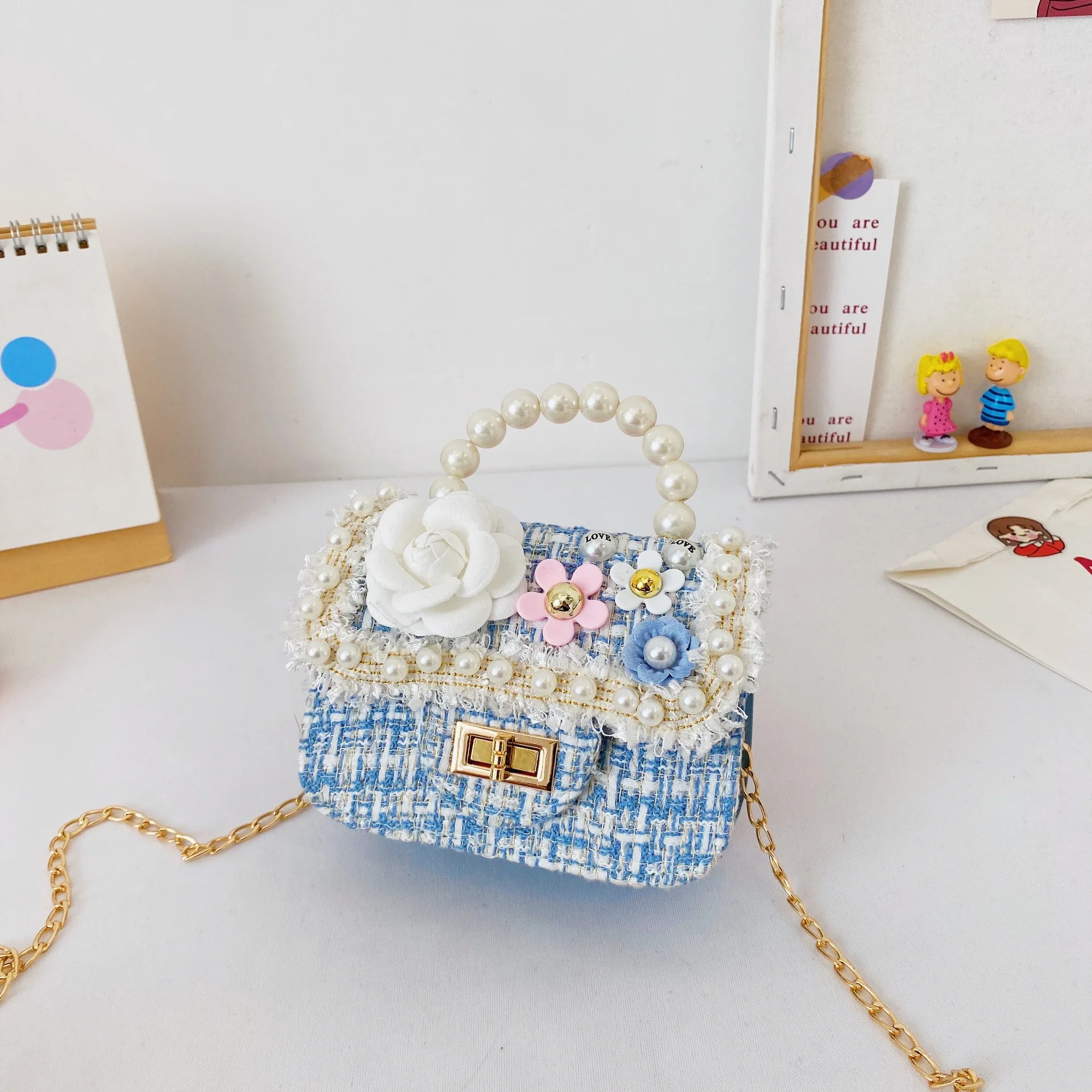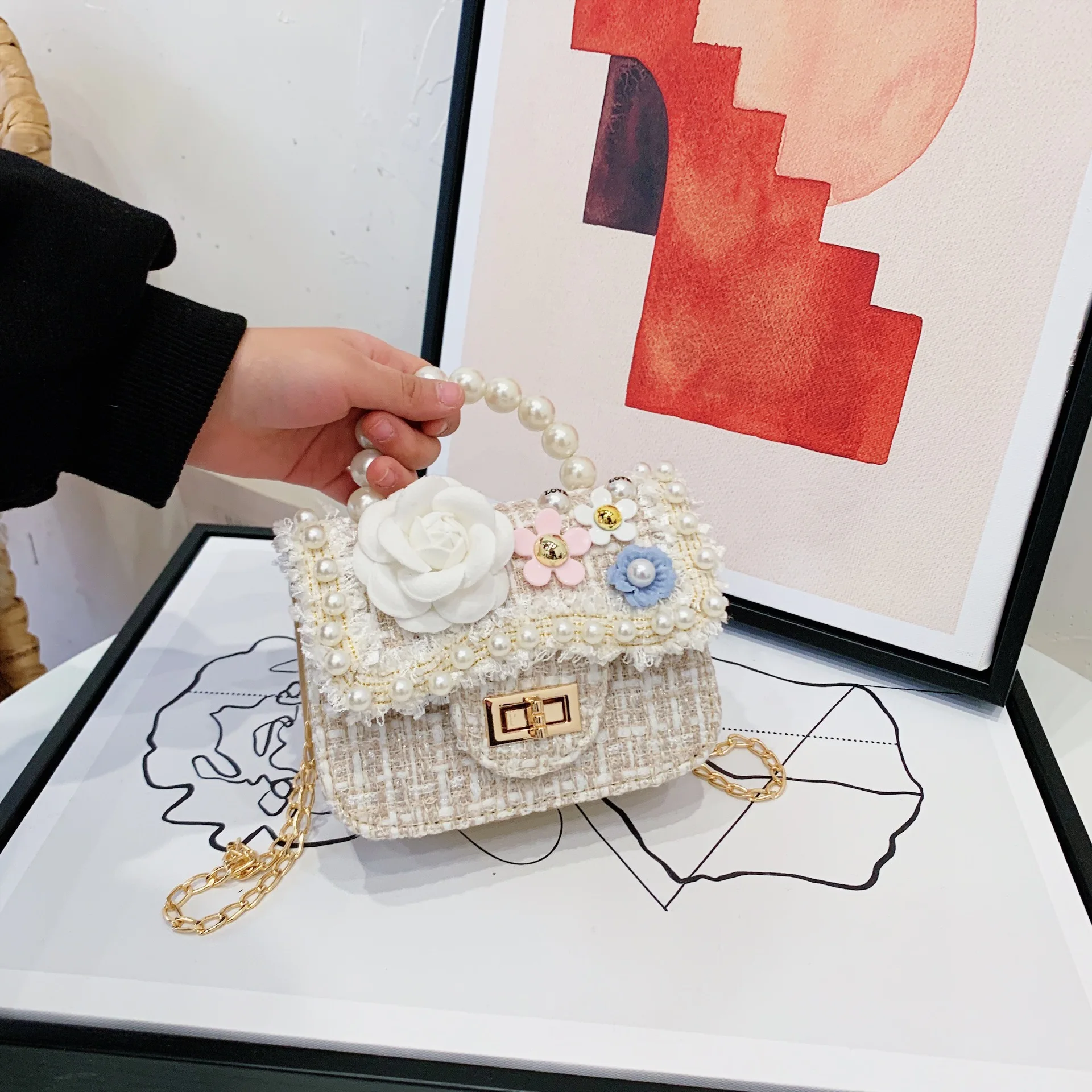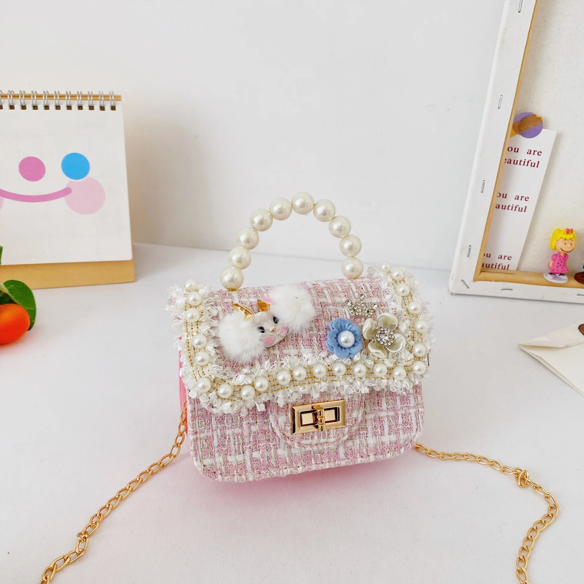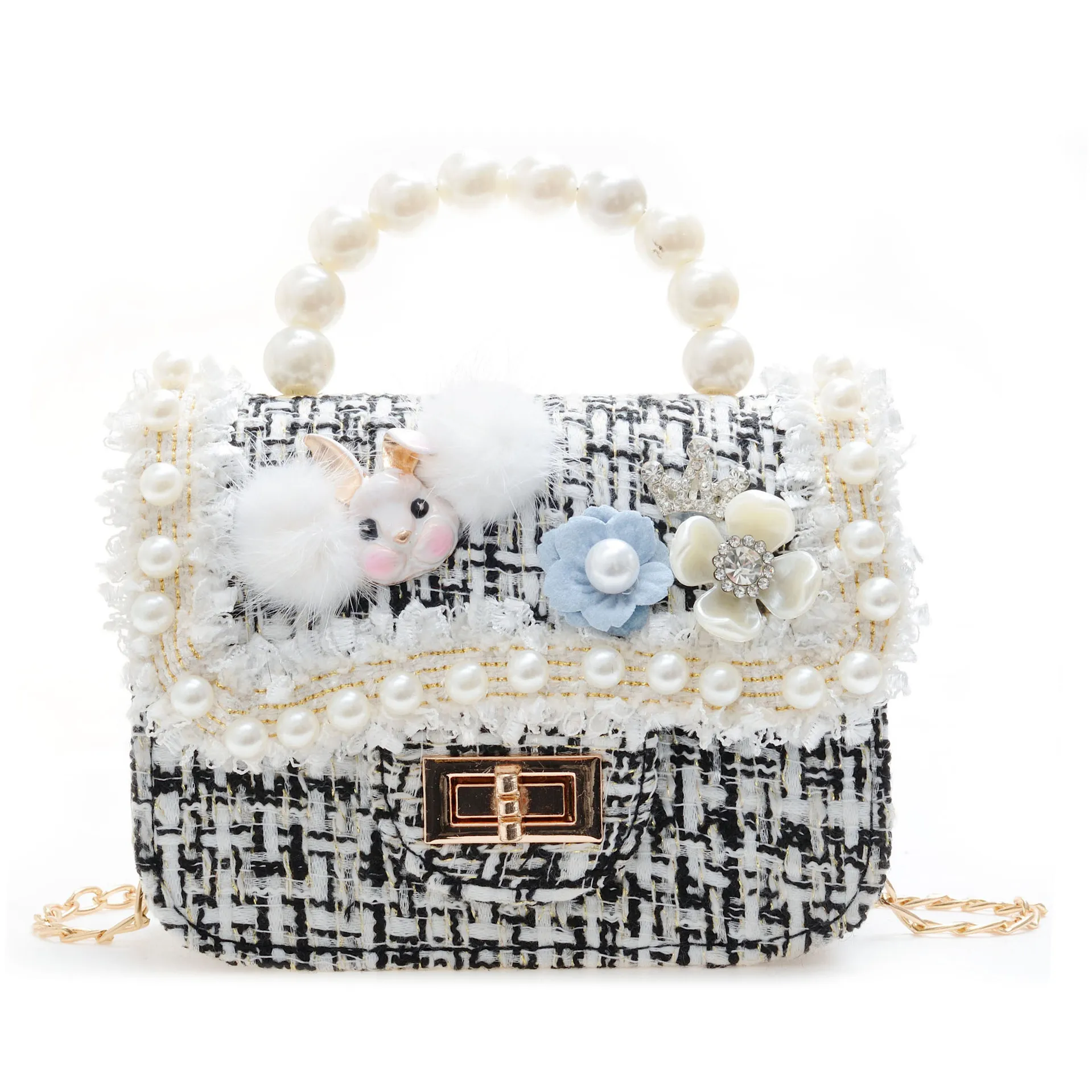 Wholesale Fashionable Mini Flower Girls Handbags Cute Cartoon Rabbit with Pearl Messenger Bag for Summer