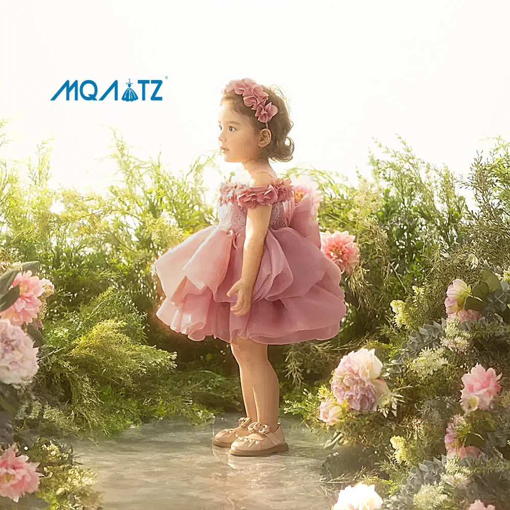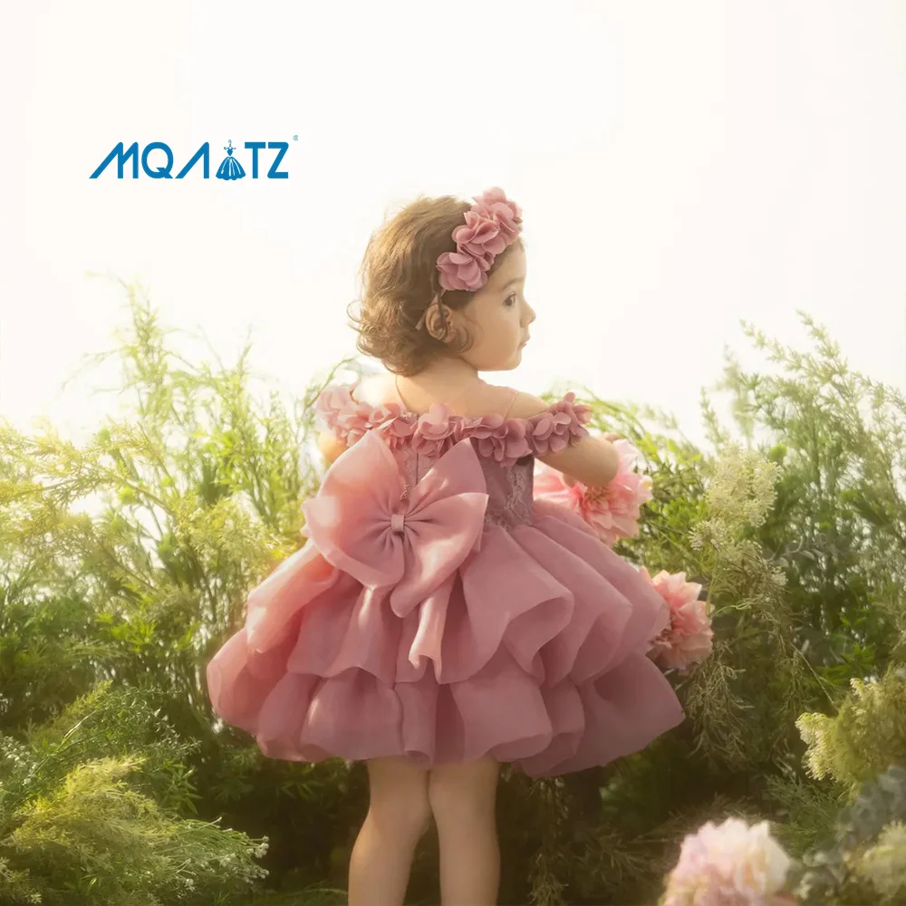 MQATZ Girls' Casual Satin Dress with Layered Princess Bow O-Neck Beaded Decoration for Pageants Weddings & Birthday Parties