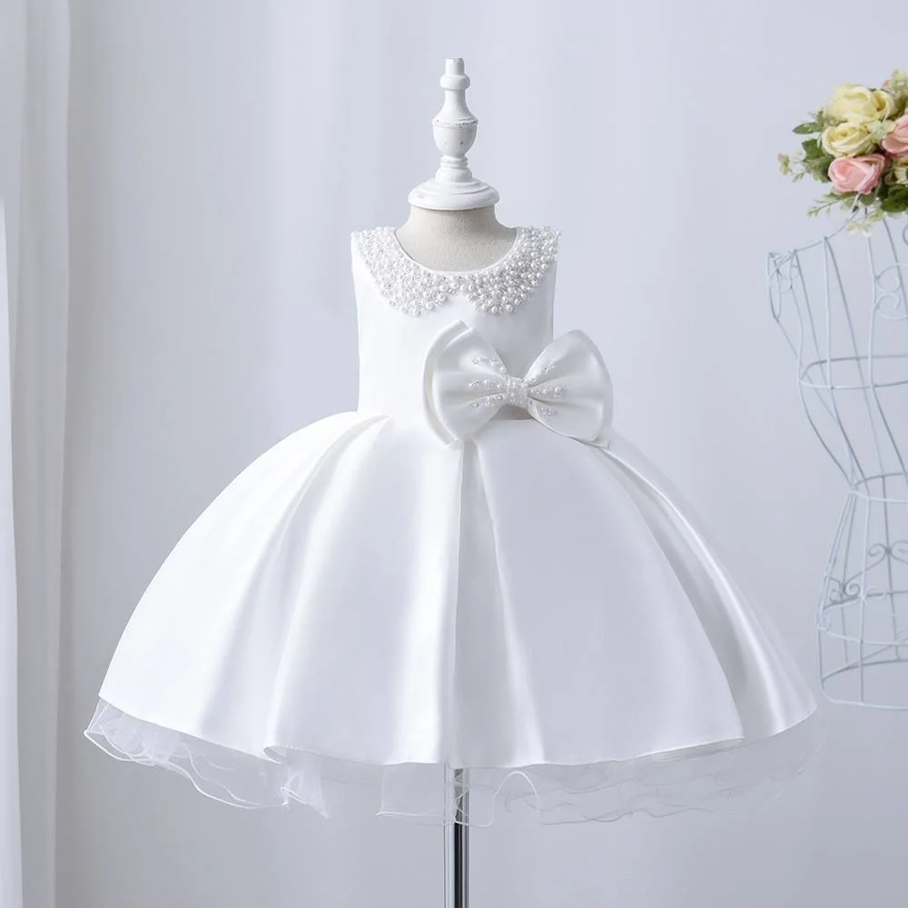 MQATZ White Ball Gown for 2-Year-Old Girls Princess Kids Party Dress Fancy Wedding Flower Girls Dress Formal Wedding Gown Bl093