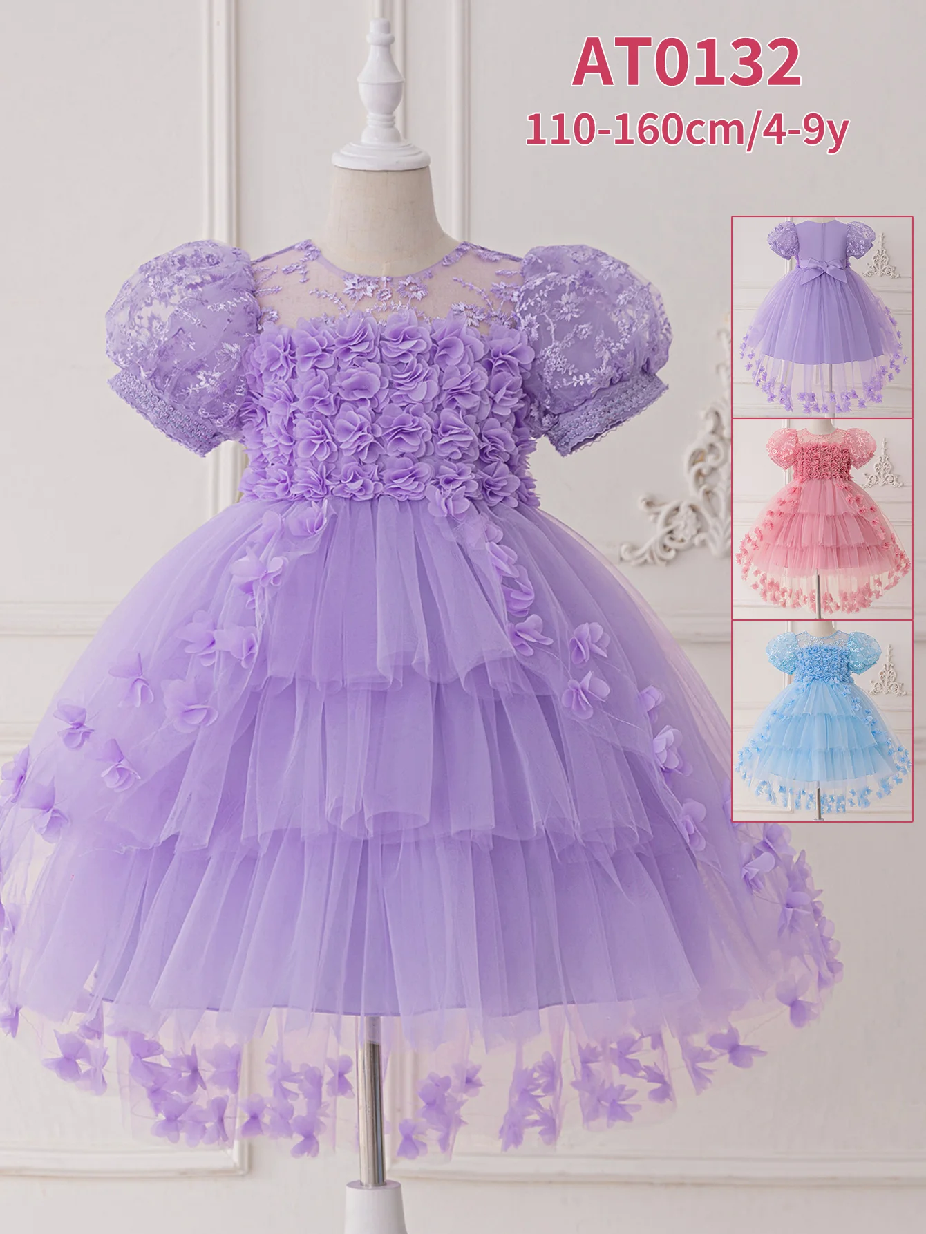 Kids Princess Baby Birthday Dress Gowns for Kids Sweet Children's Birthday Dress for Girls Floral Design Kids Party Dress