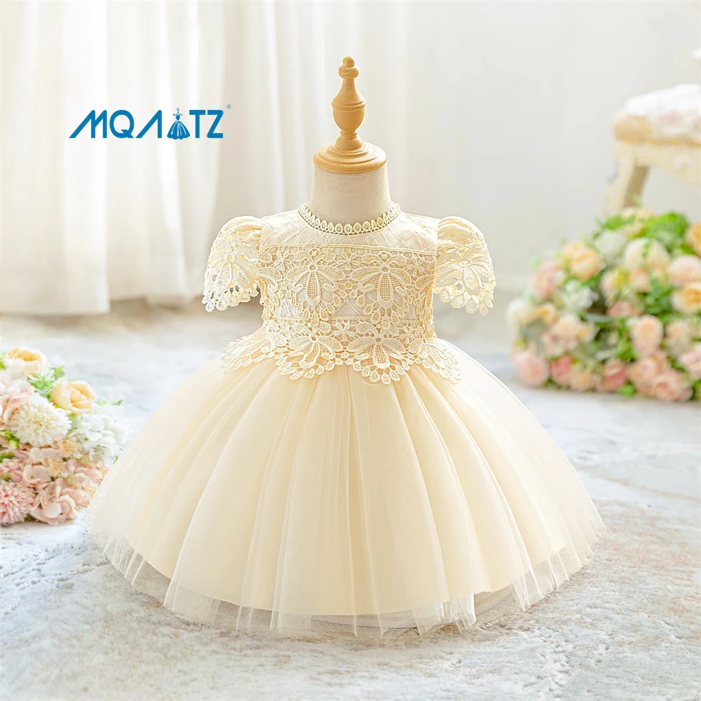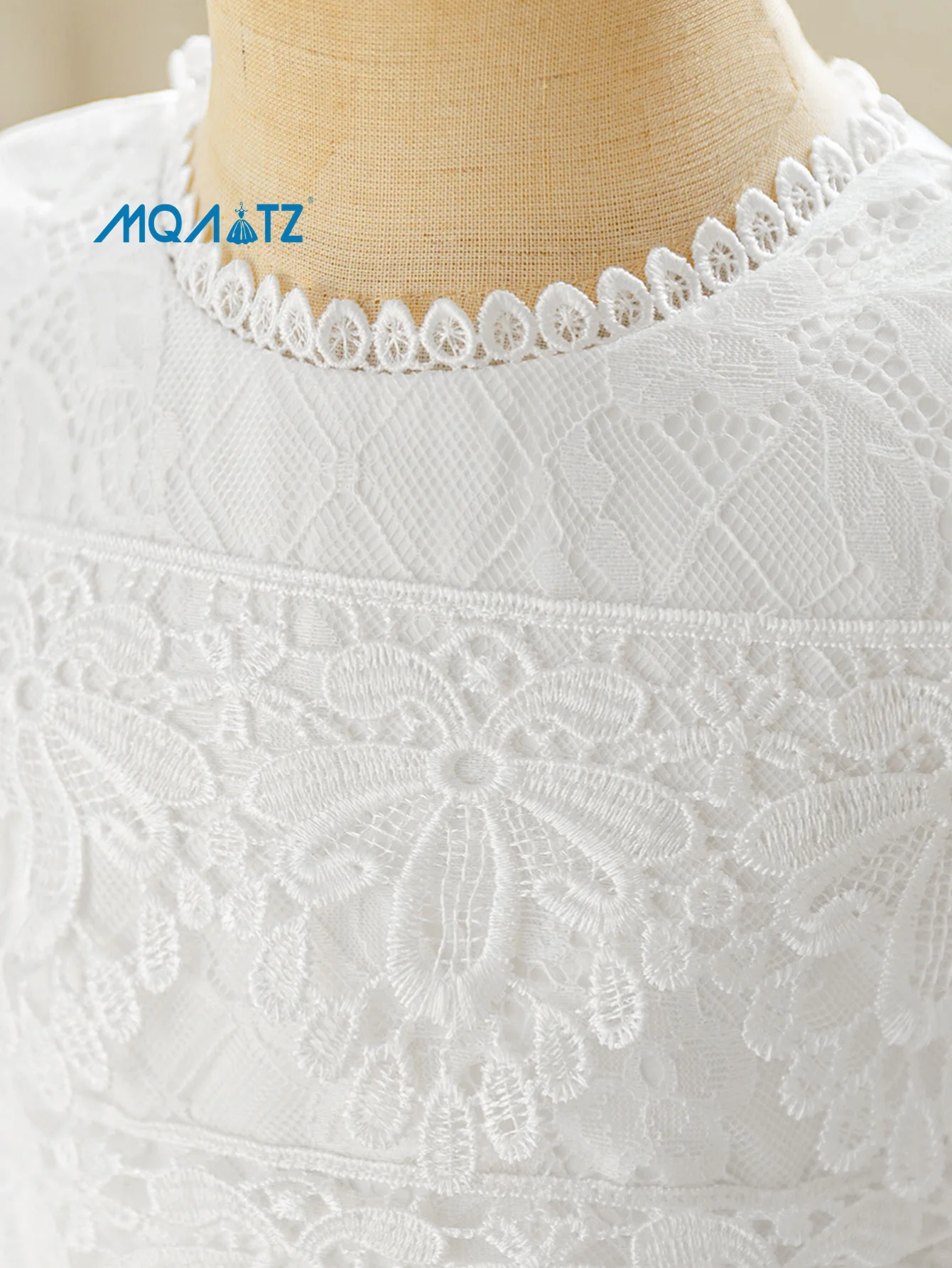 White Lace Embroidered Baptism Dress for Girls O-Neck Infant Christening Gown Casual Princess Style for Children's Summer