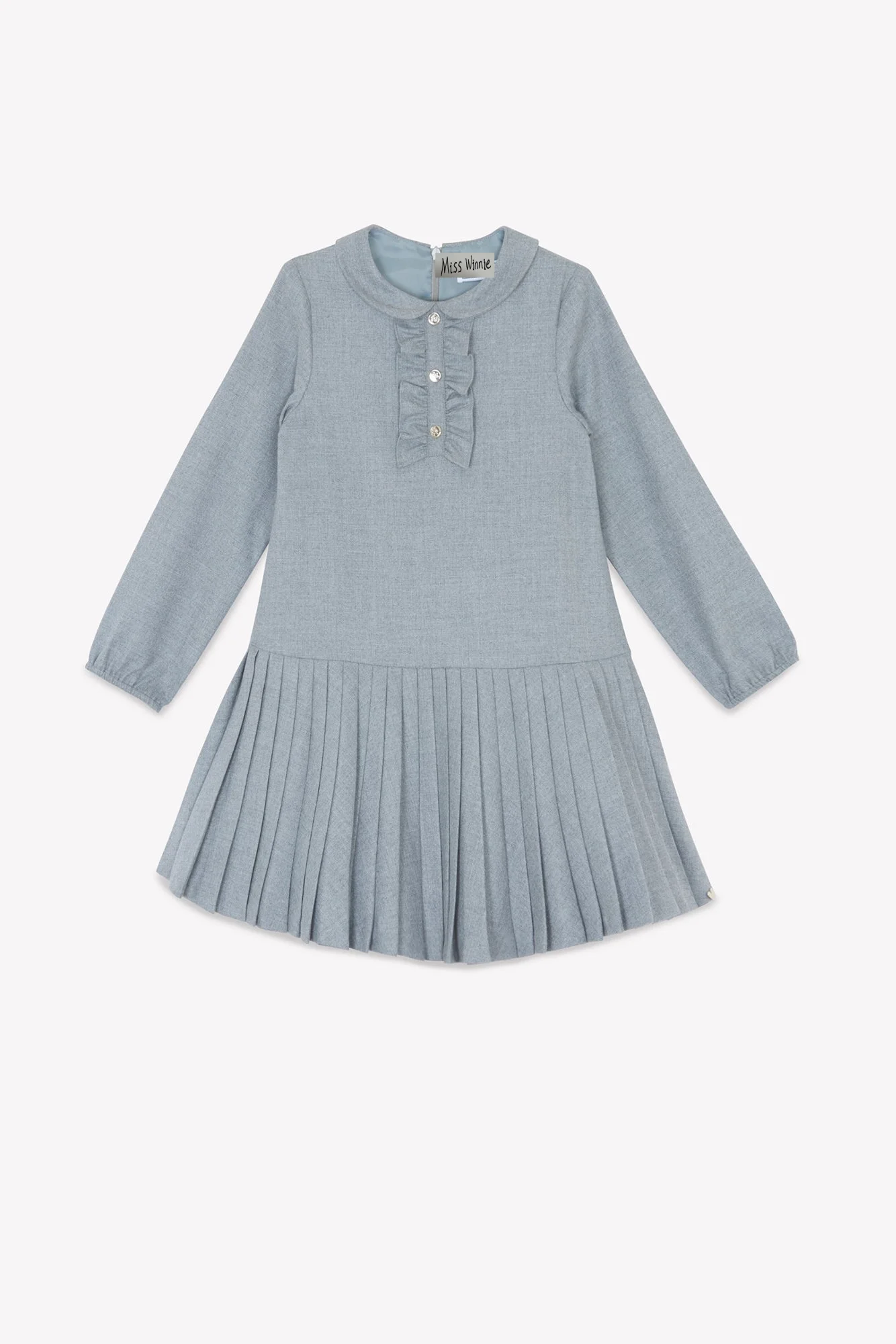 Autumn Winter Girls' Formal Boutique Dress High Quality Cotton Long-Sleeved Gray Lace Decoration Babies for Daily Party Use New