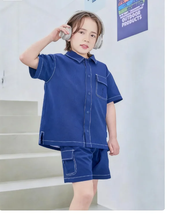 Custom Tag 95% Cotton Solid Color Denim Outfit for Summer Casual Infant Toddler Boys & Girls Clothes Set-Top Shorts & Shirt Kids