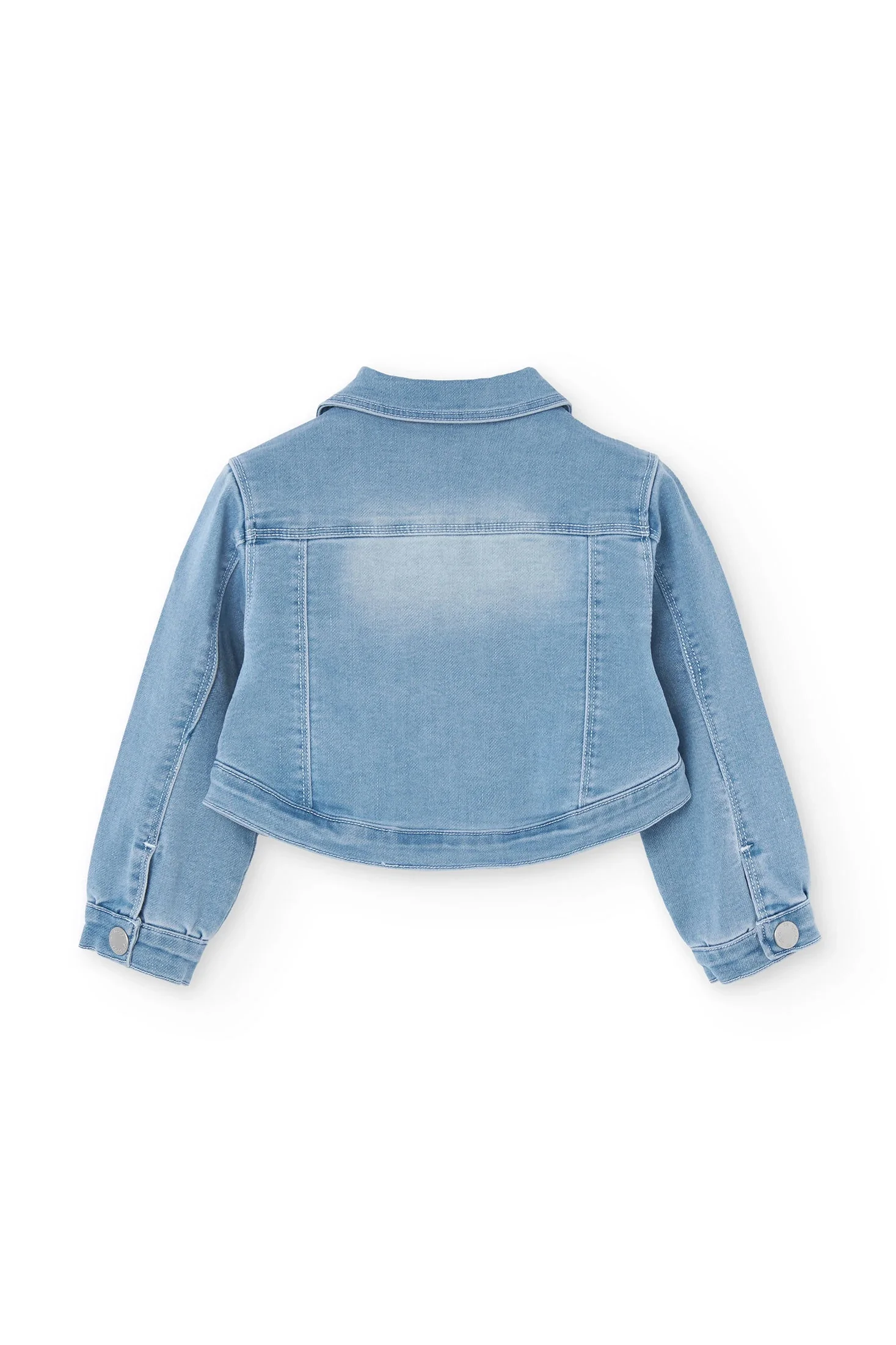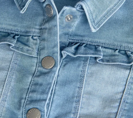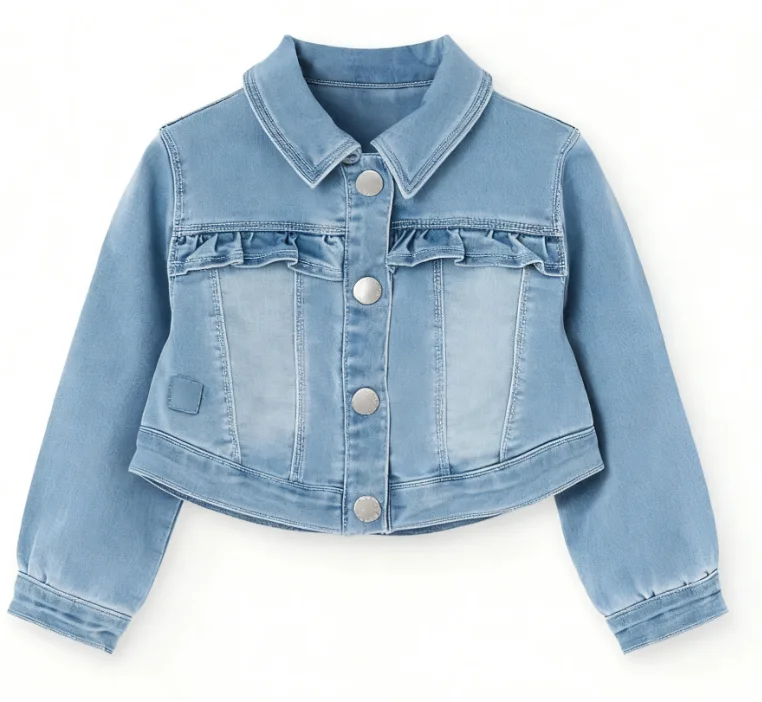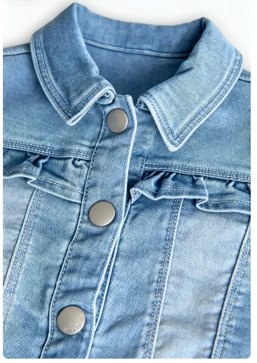 Autumn Custom Design Girls' Casual Jeans Jacket with Frill Sleeve Flower Edge Solid Pattern Washed Techniques Long Length