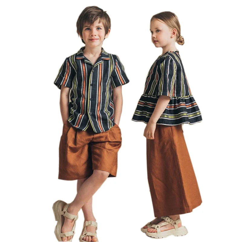 OEM ODM Brand's Khaki Shorts Striped Shirt Set 100% Cotton Premium Woven Fabric Fashion Casual Design for Boys' Everyday Summer