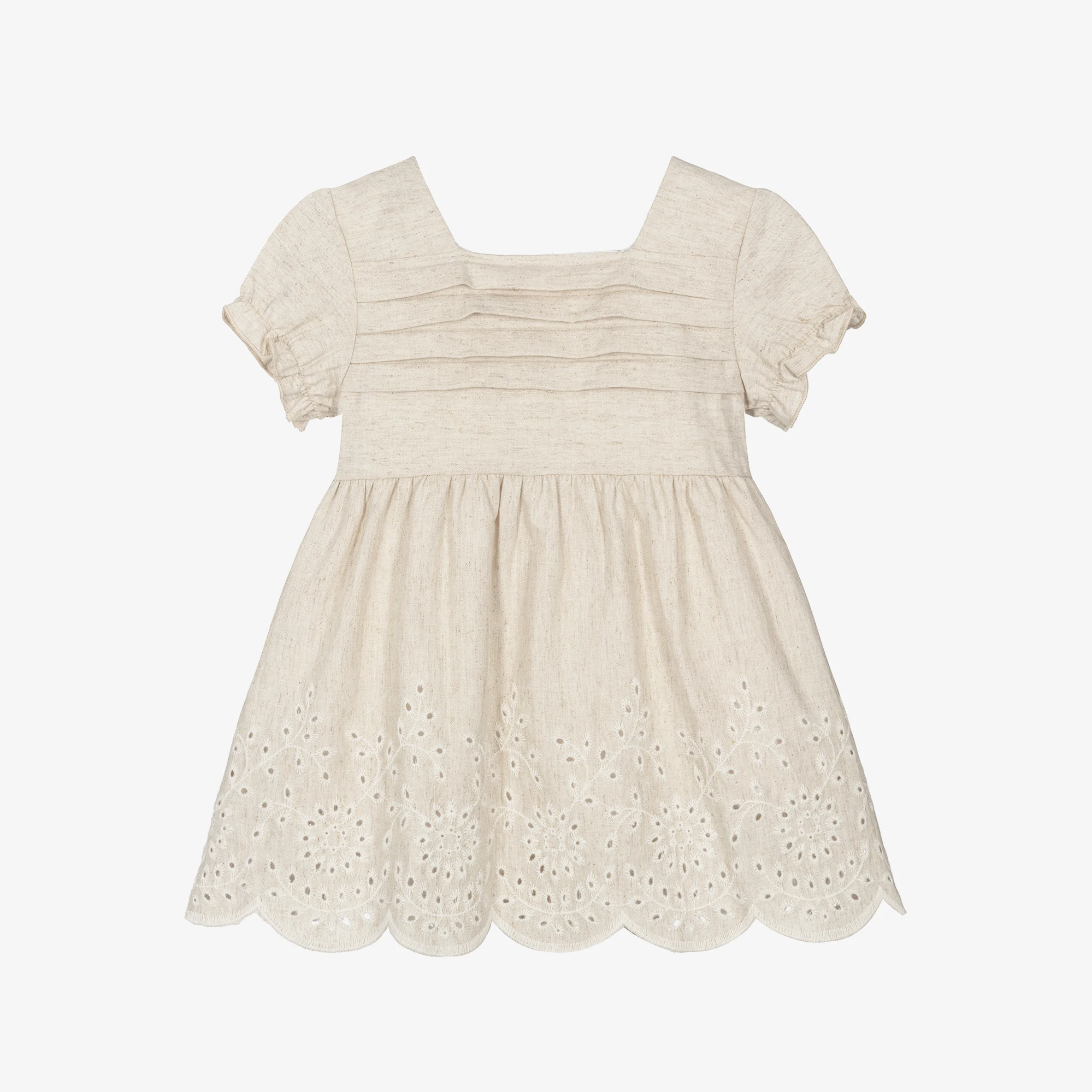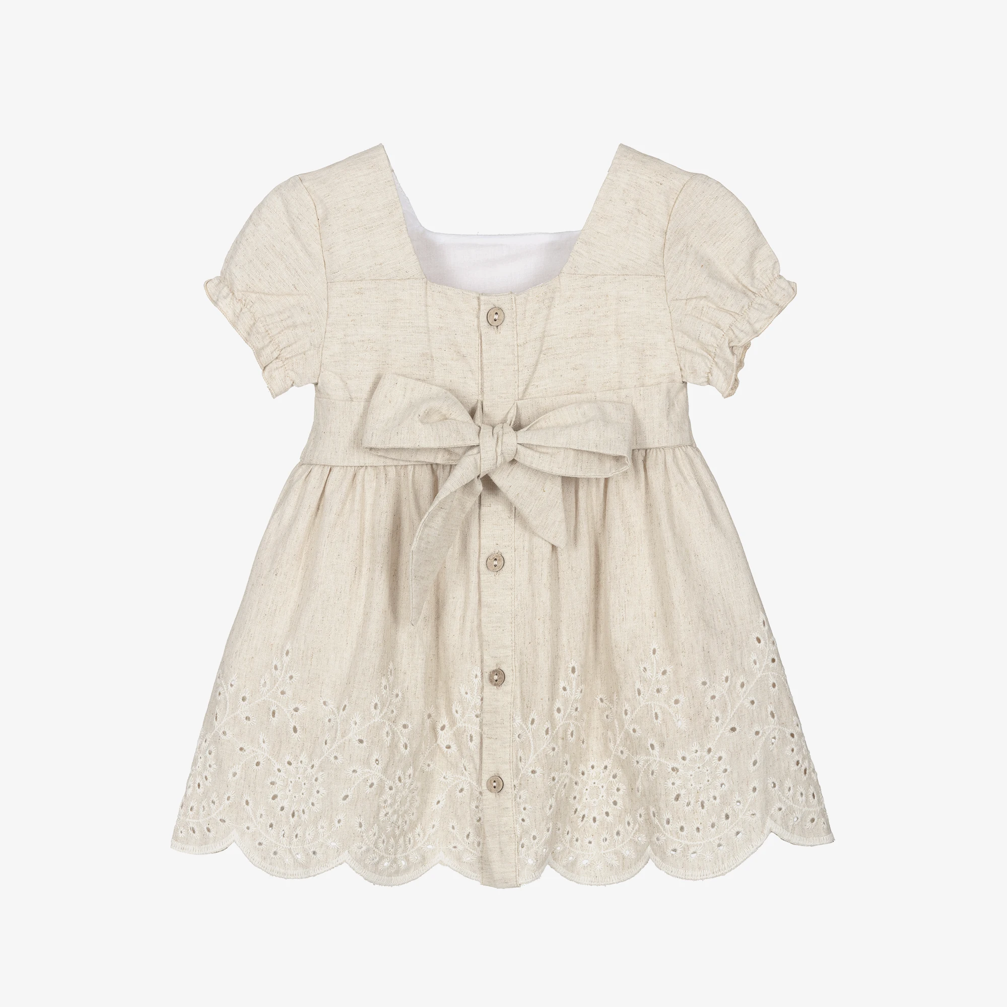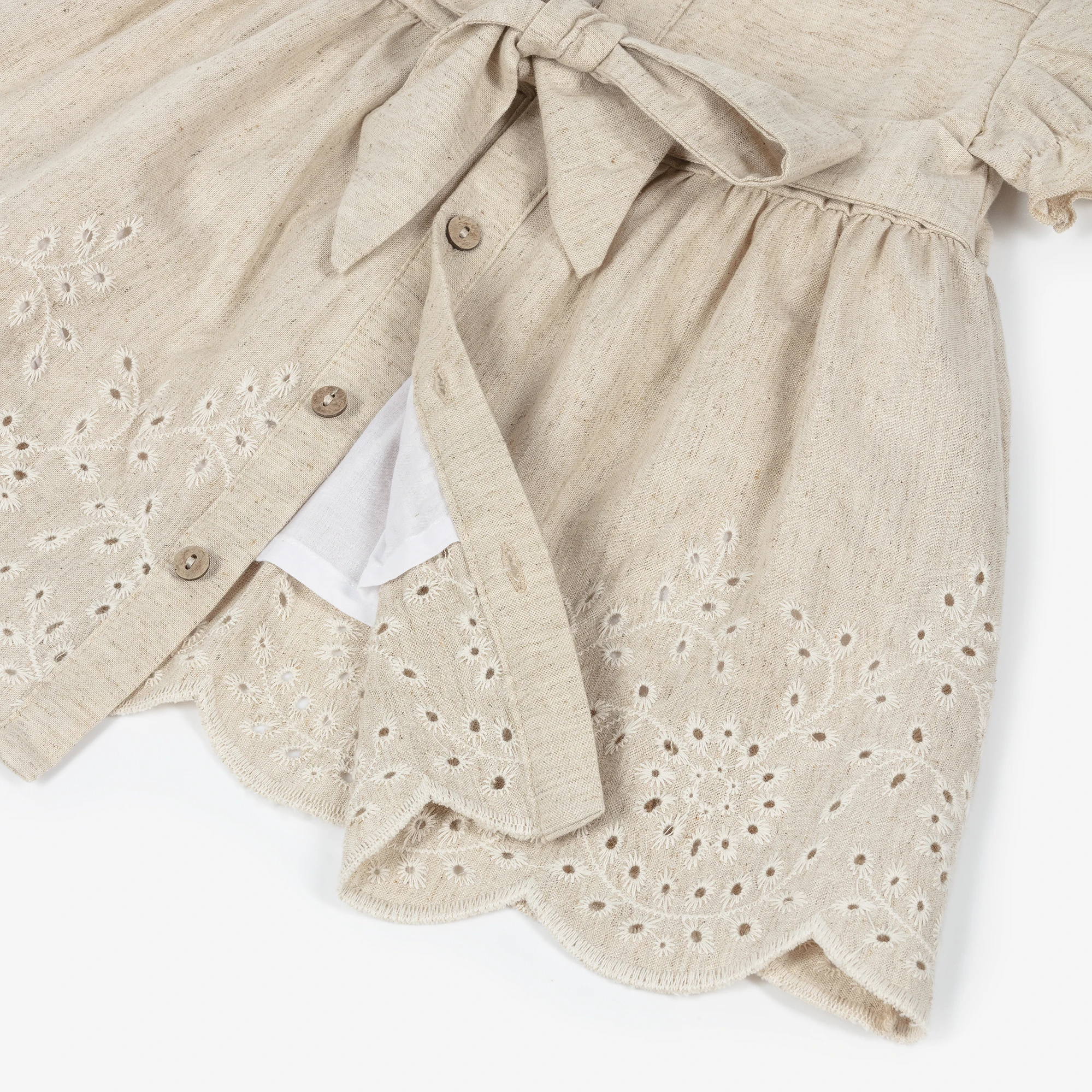 Custom Logo Casual Kids Girls Cotton Linen Pleat Embroidery Knee-Length A-Line Dress Buttons Closure Comfortable Dress Children