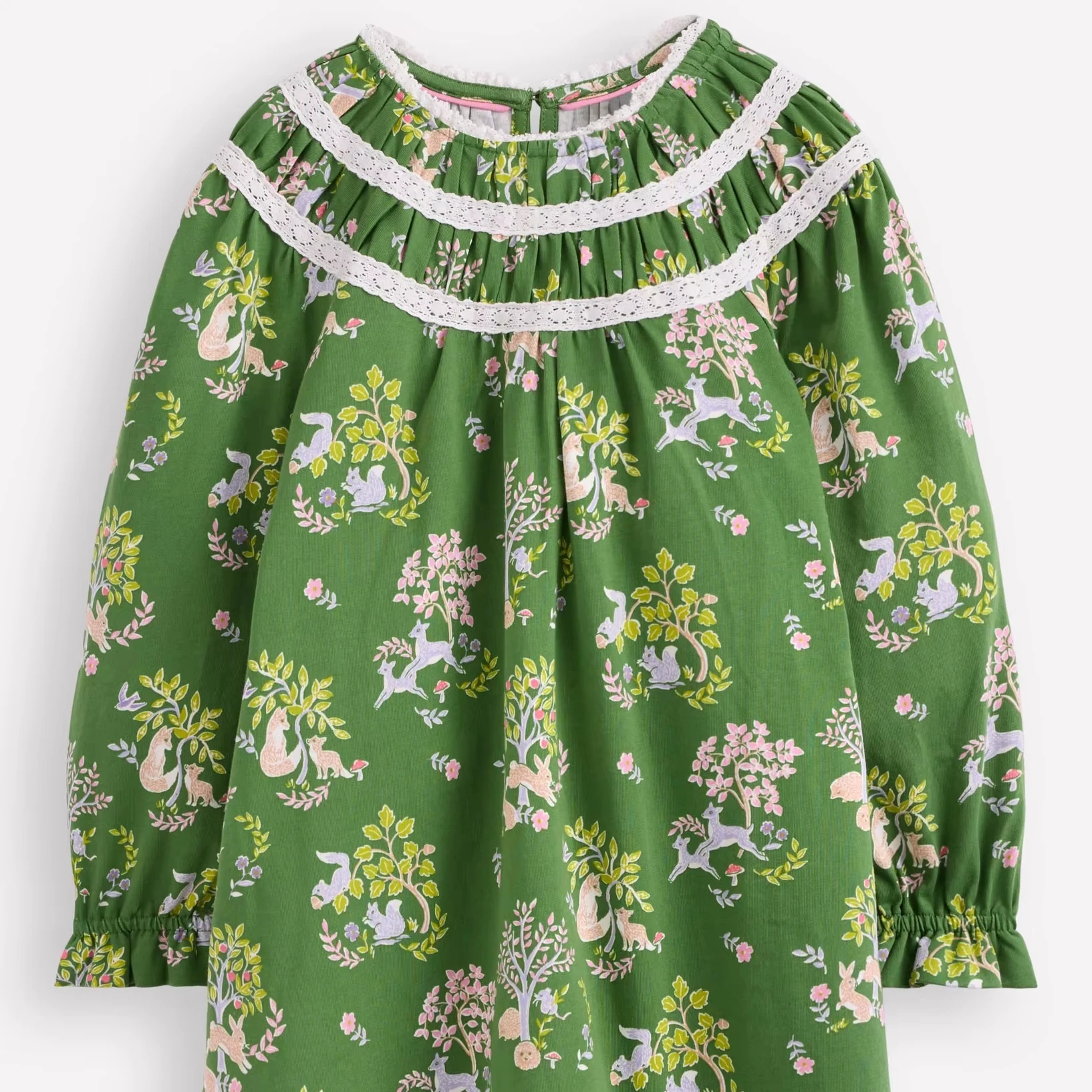 Girls' Velvet Polyester/Cotton Breathable Maxi-Length Long Sleeve Green Printed Dress for Autumn