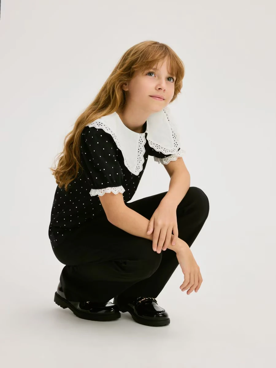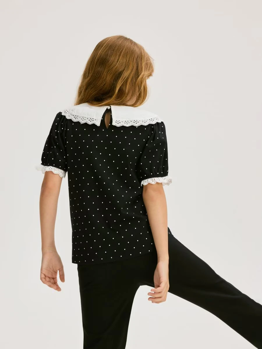 Girls Short-Sleeved Doll Collar Pullover Top Cute T-Shirt & Polo Shirt