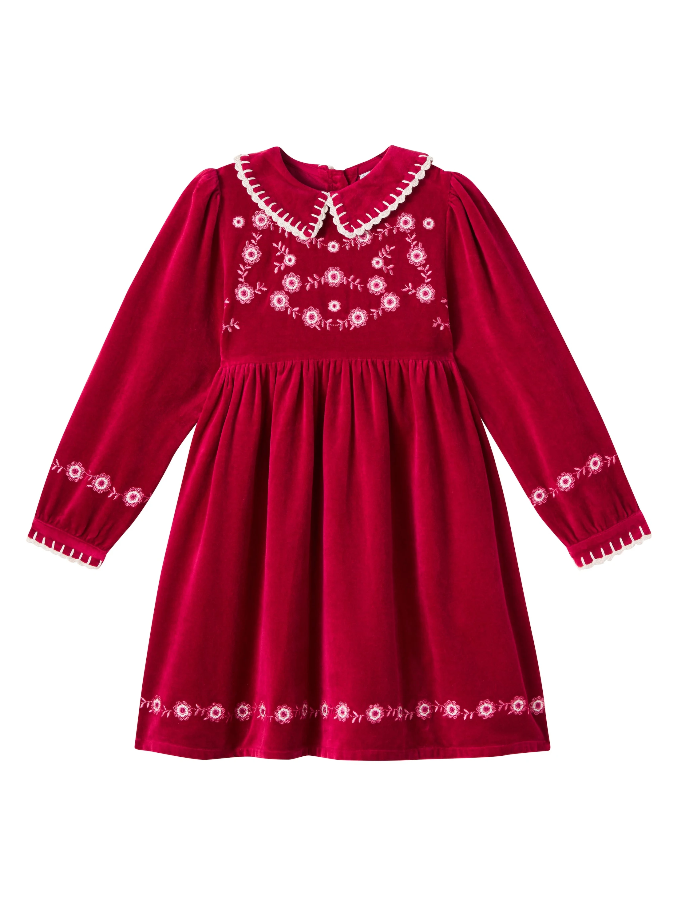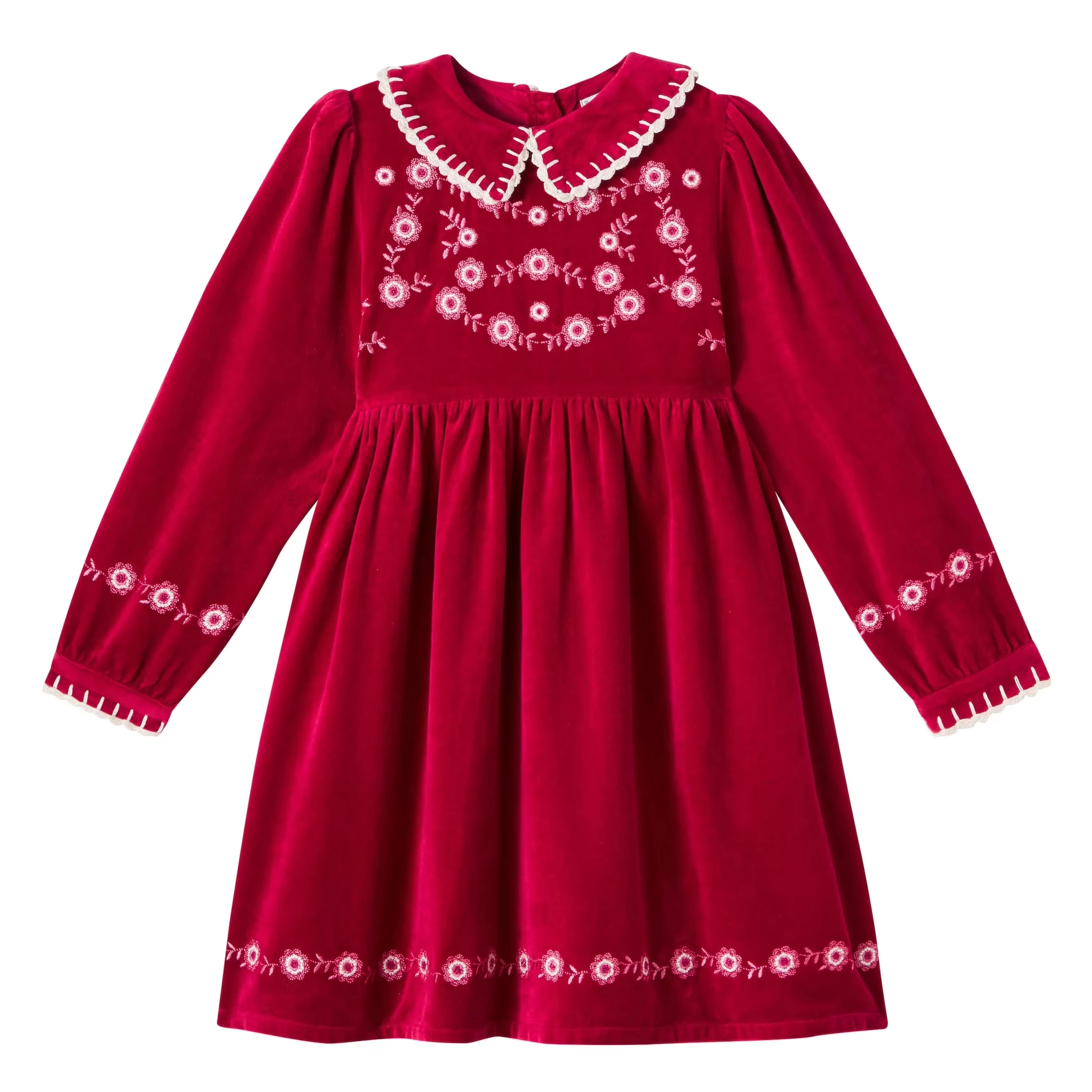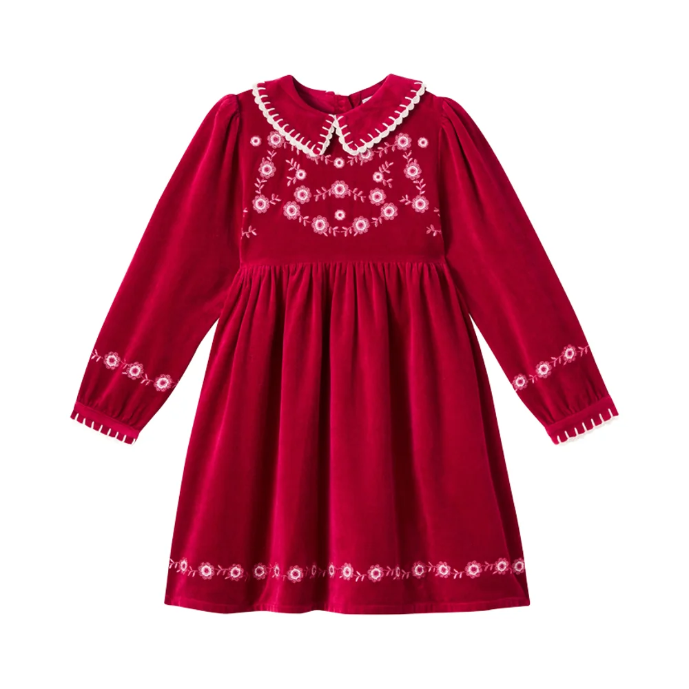New Arrival Elegant Girls Hand Embroidered Smocked Beautiful Embroidery Solid Pattern Vintage Long Sleeve O-Neck Knee-Length ODM