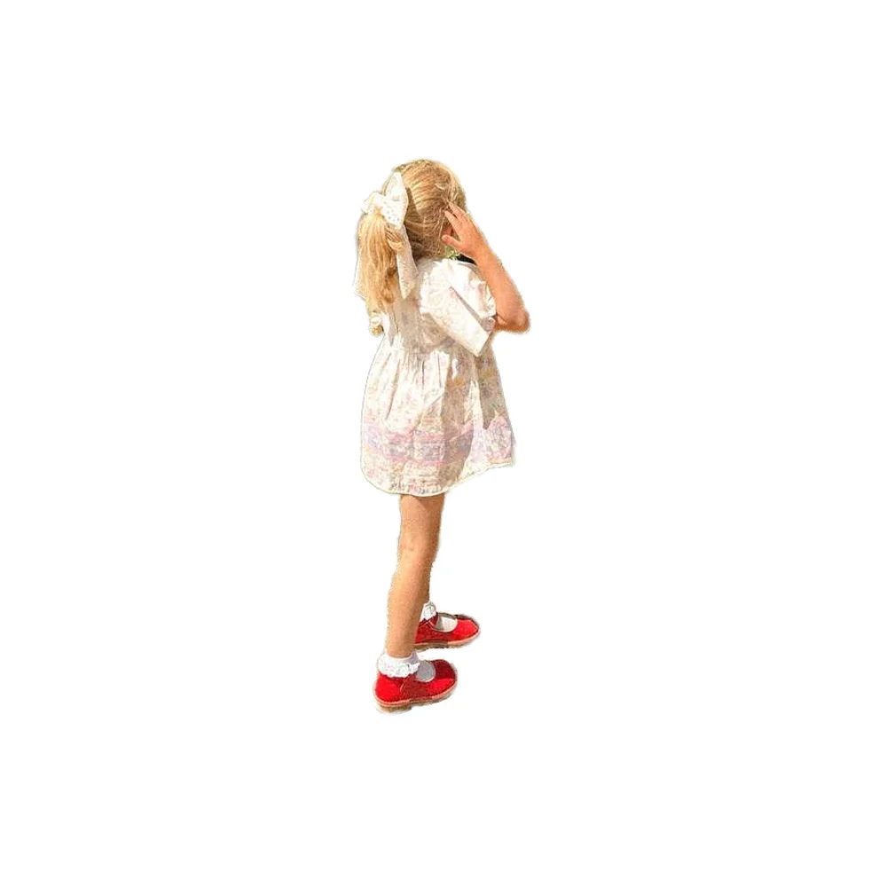 Cute Cotton Floral Print Princess Dress for Girls O-Neck Casual Style Knee-Length Flower Decoration for Summer Parties Children