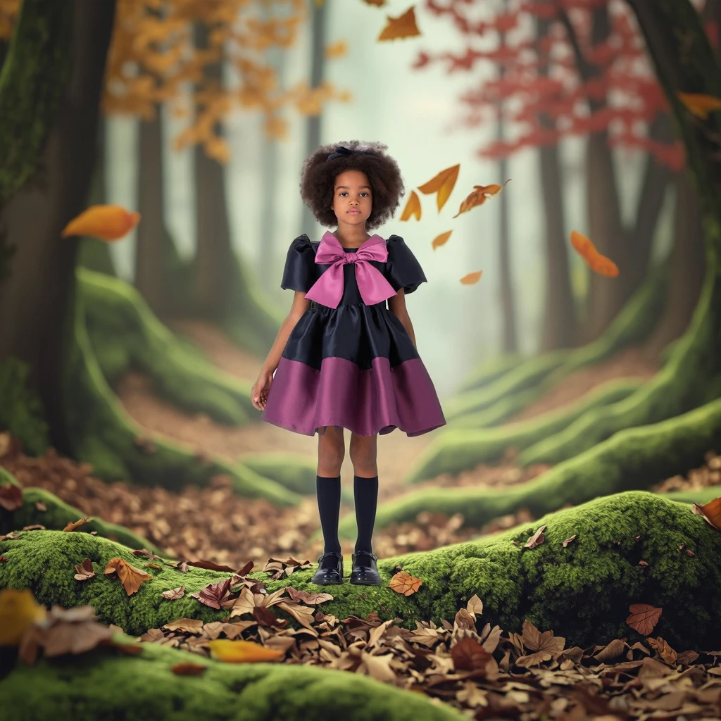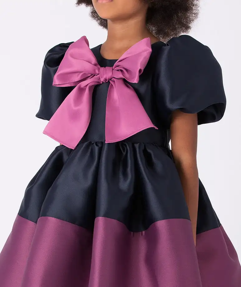Custom Brand Satin Dress for Girls 10-11 Years for Old Navy Blue Summer Party Casual Dress with Puffy Sleeve and Big Bow Design