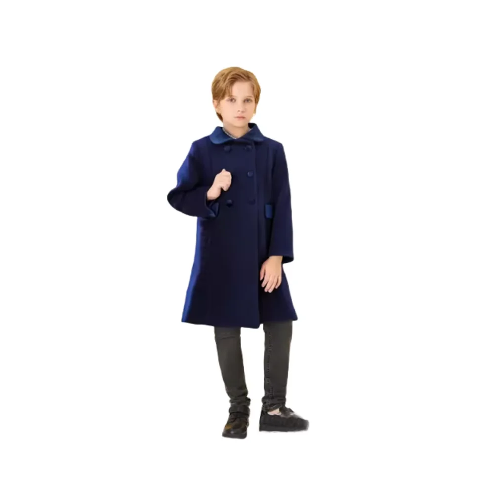 Wool Trench Coat for Kids Set Plain Navy Coat for Winter Styles Design Gaoteng Company