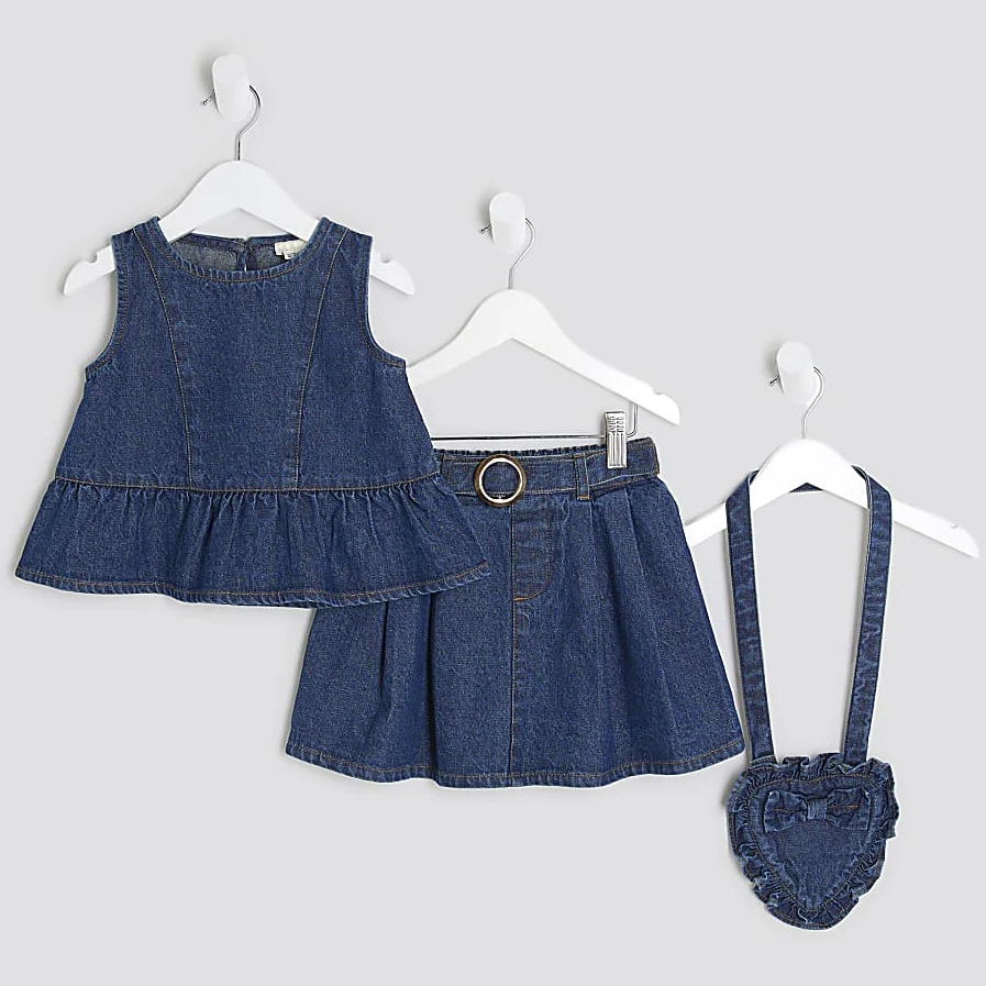 OEM ODM Girls' Children's European Style Summer Two-Piece Denim Outfit Sets 100% Cotton Soft Fabric