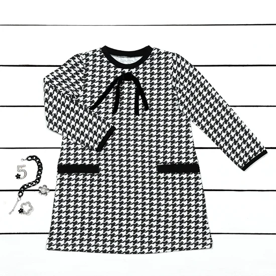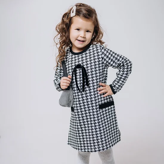 New Bestseller High Quality New Model Children Black and White Plaid Summer Girl Child Dress with Pattern Leisure Wear