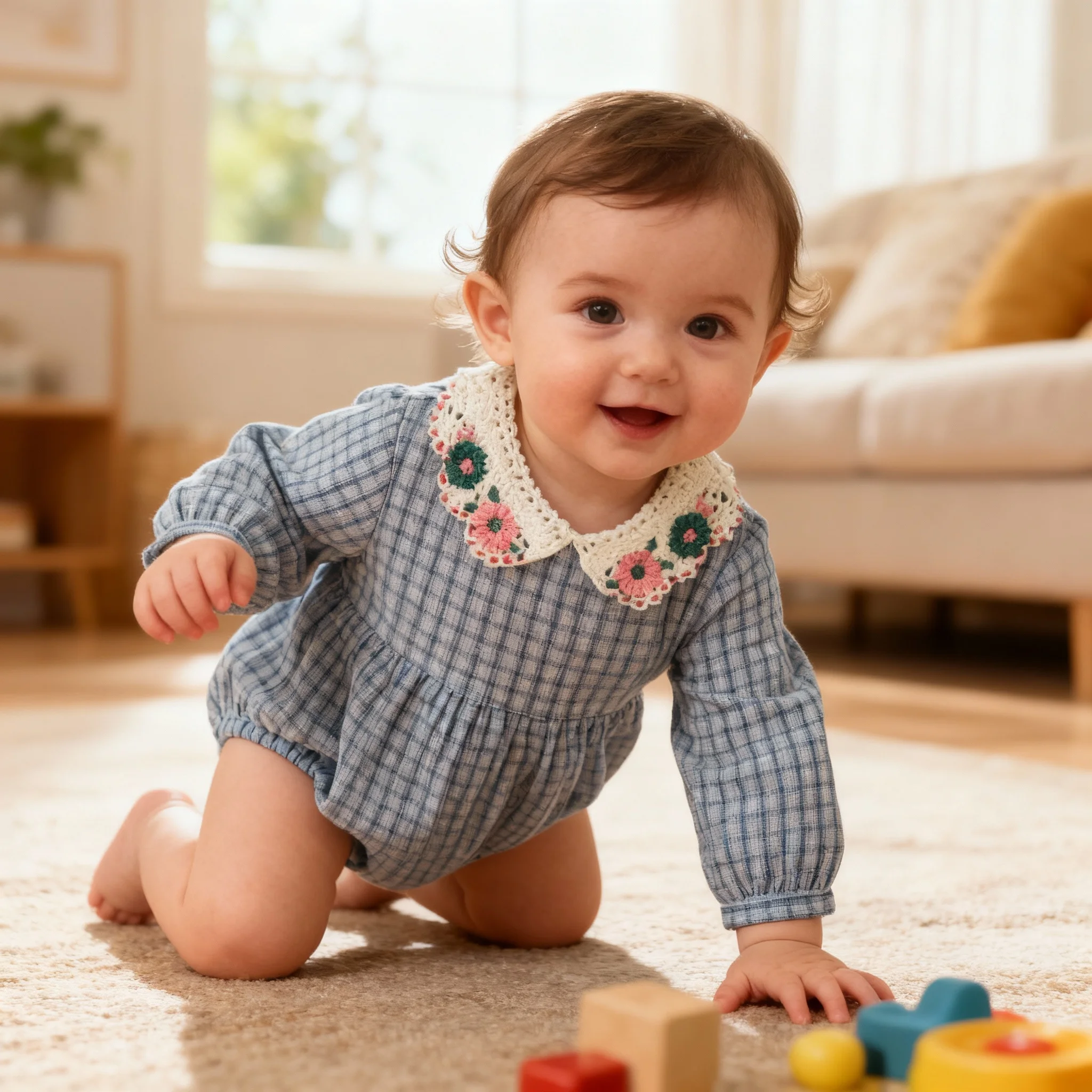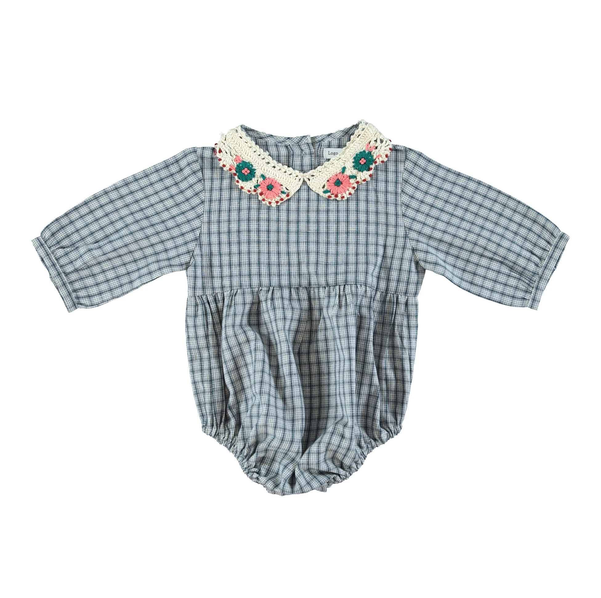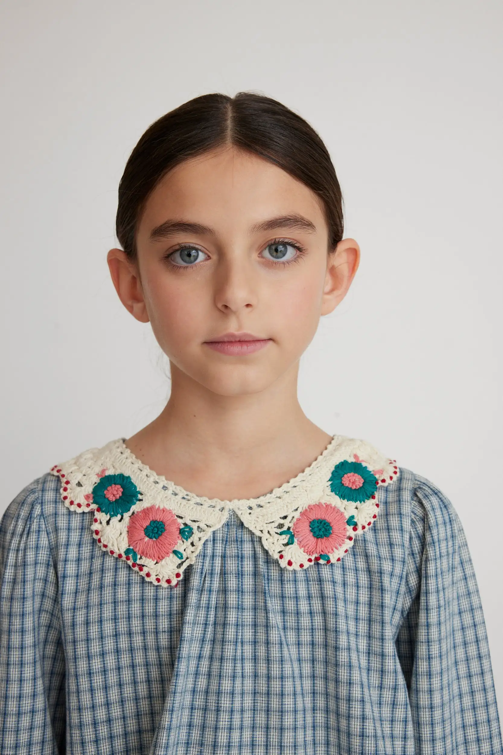 New Fashion High Quality ODM Kids Girls Clothing Sets Cotton Plaid Long Sleeve Handmade Embroidery Matching Clothes Children