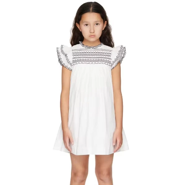 New Bestseller High Quality Smocking Embroidery White Summer Girl Child Dress with Sleeveless