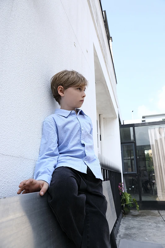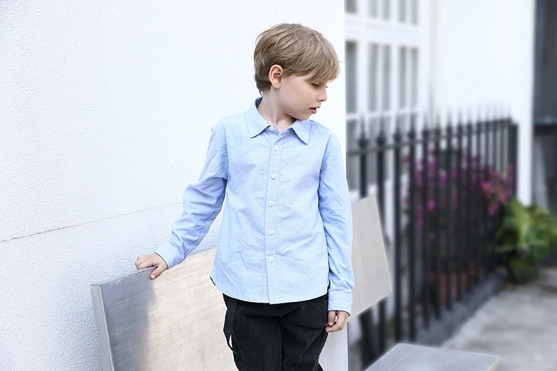 2026 Guangdong Factory Hot Sell Long Sleeve Solid Color 100% Cotton Dress Shirt for Child Summer Collection Boys Dress Shirt