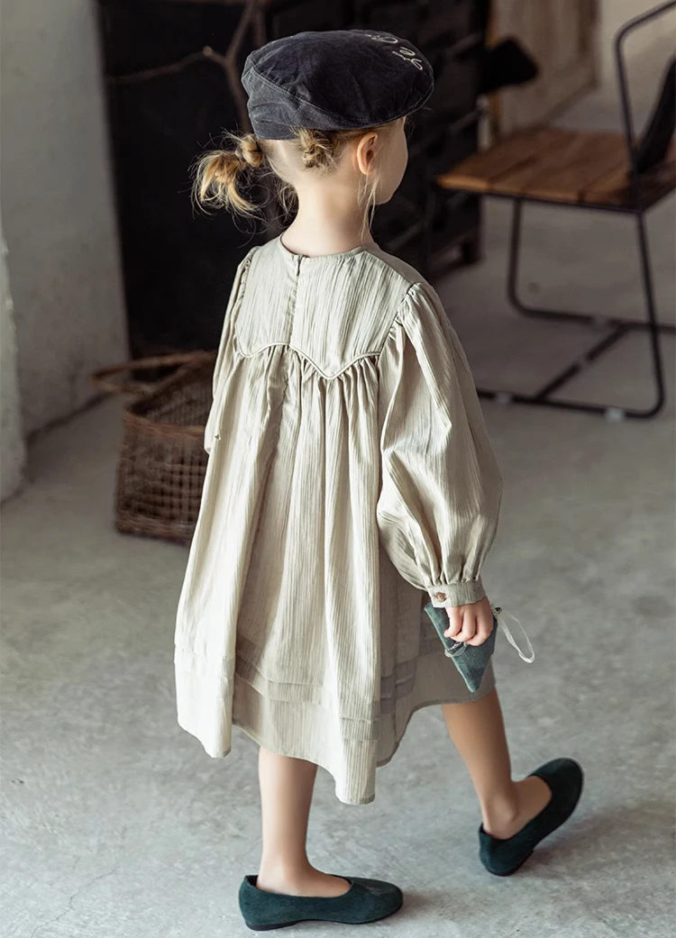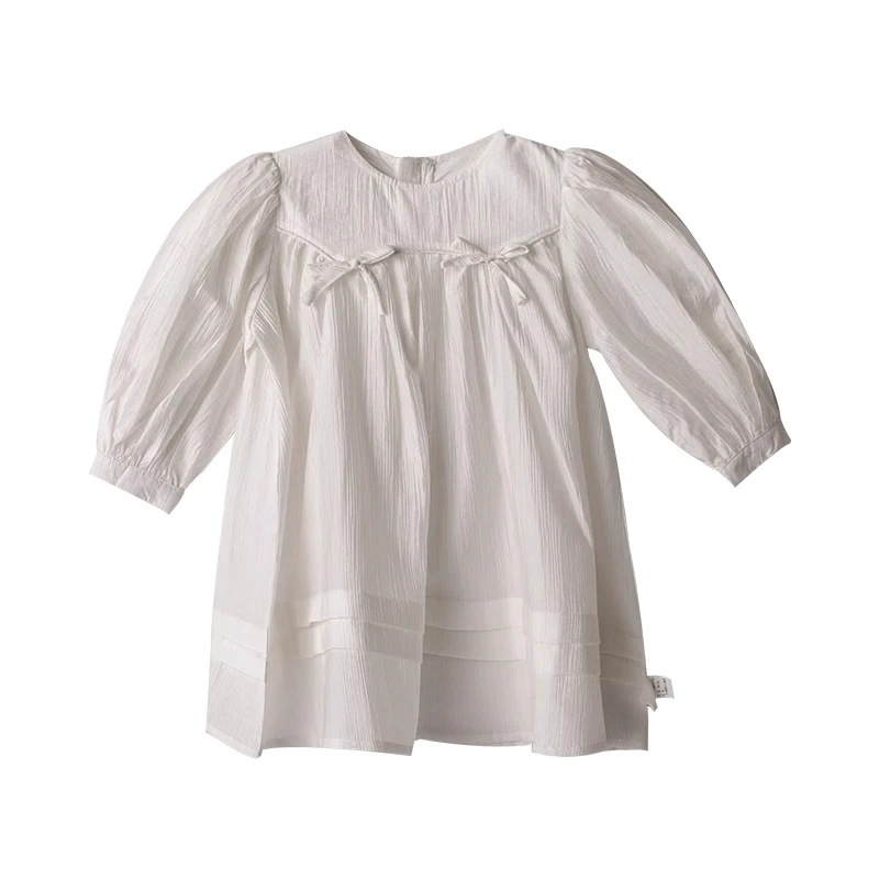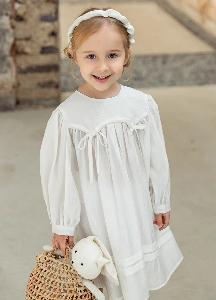 Customized Factory Girls Kids Solid White Dress Kids Wholesale Bow British Girl Child Dress