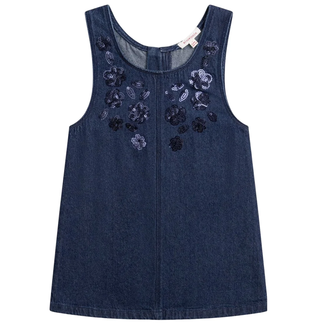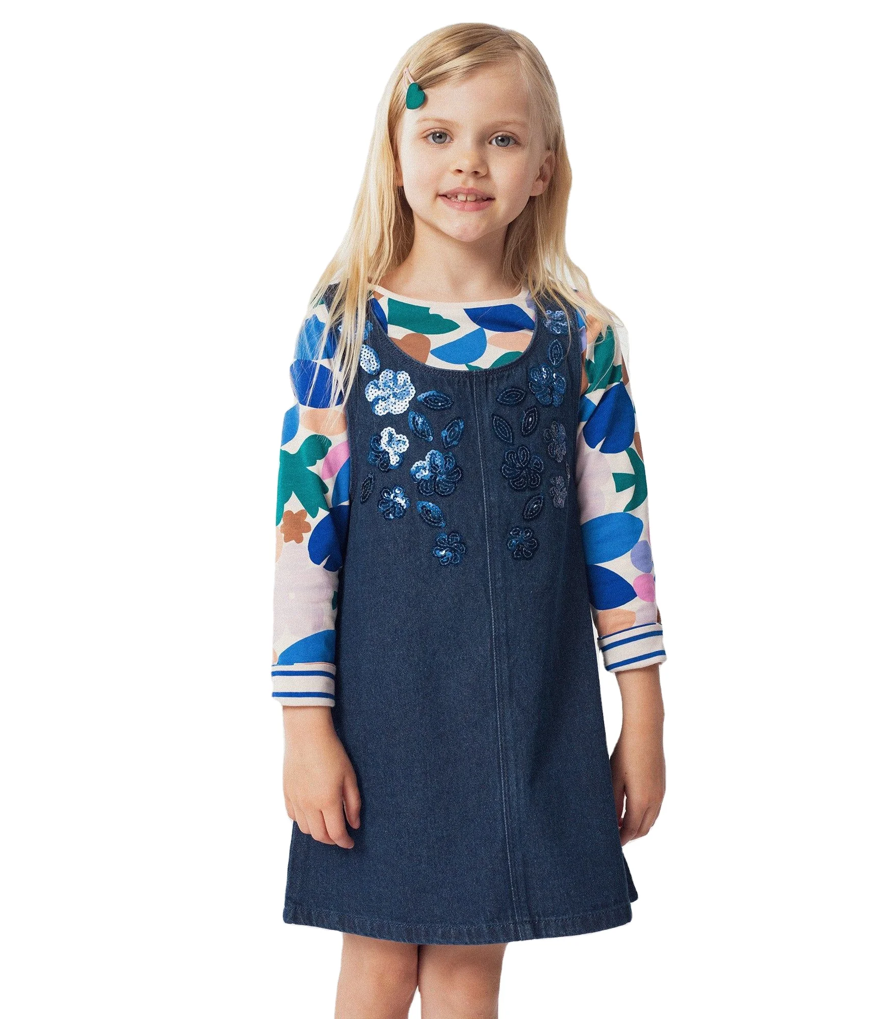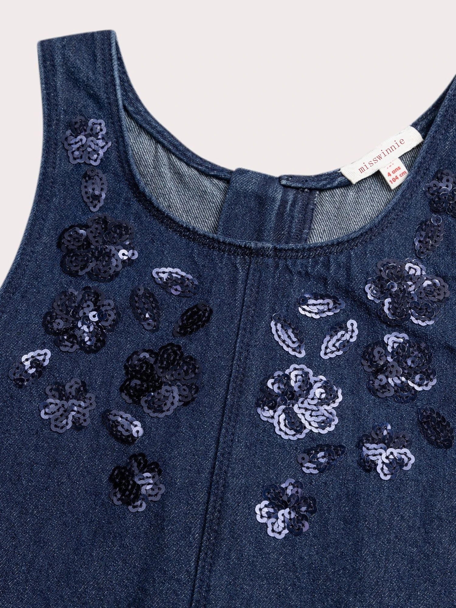 OEM & ODM Kids Girls Summer Suspender Dress Sleeveless Knee-Length Denim Fabric with Sequins Eco-Friendly