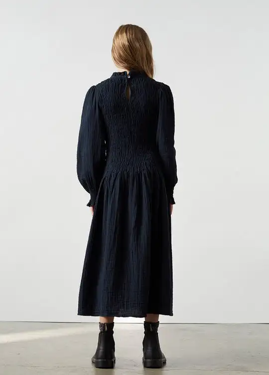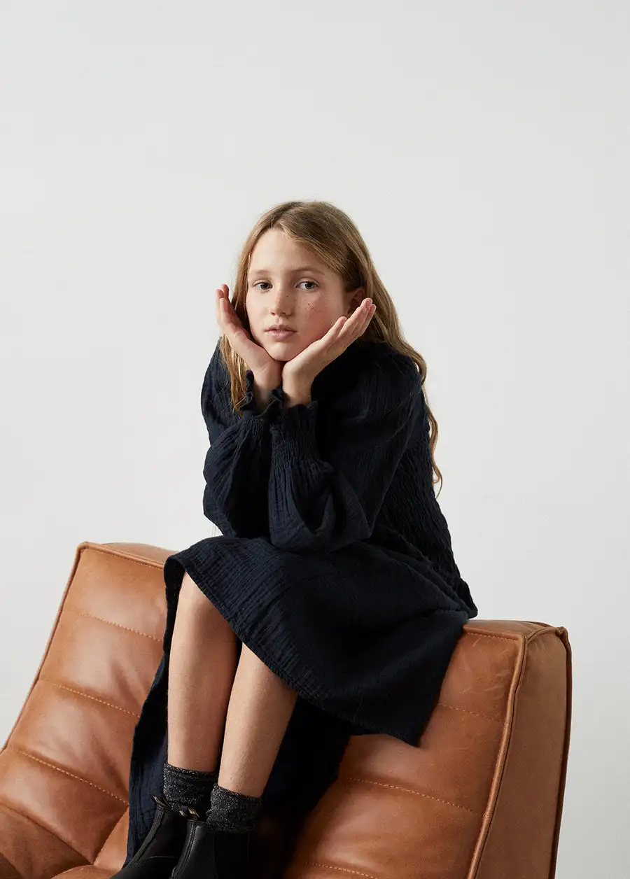 OEM Casual Solid Crepe Cotton Maxi Dress for Kids Girls Clothes Standard Long Sleeve Smocked Dress for Winter Fashionable Design