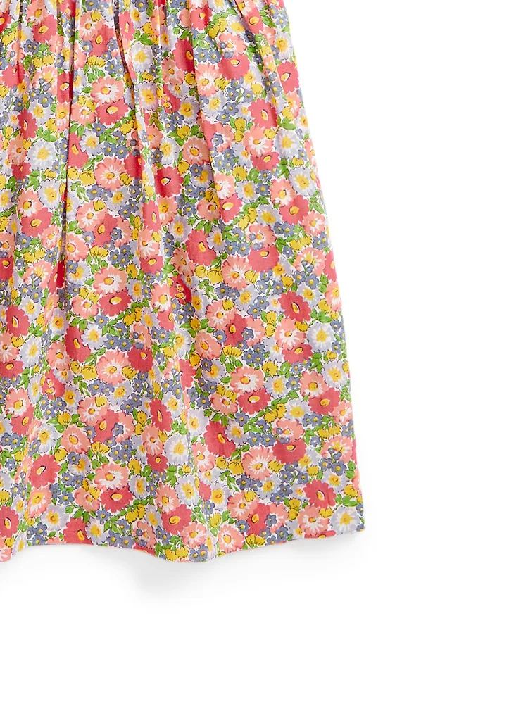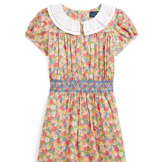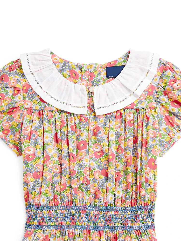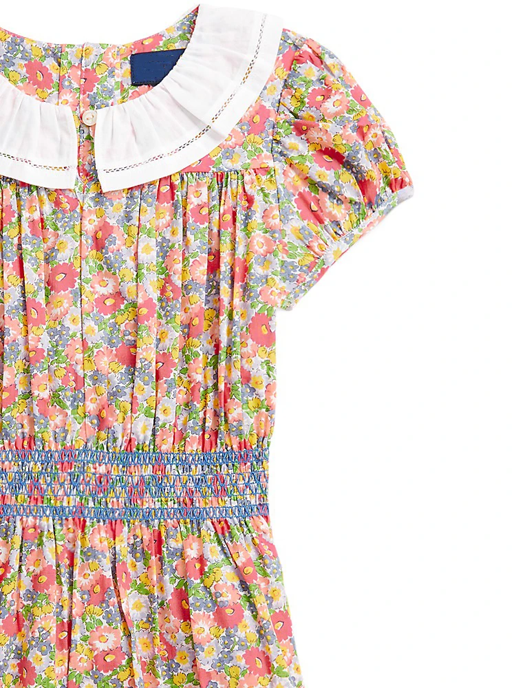 Good Quality Elegant Autumn and Winter Short Sleeves Ruffled Peter Pan Collar Smocking Waist Multi Flora Girls Dress