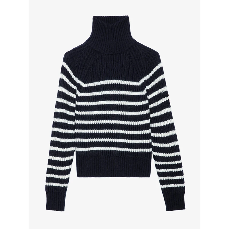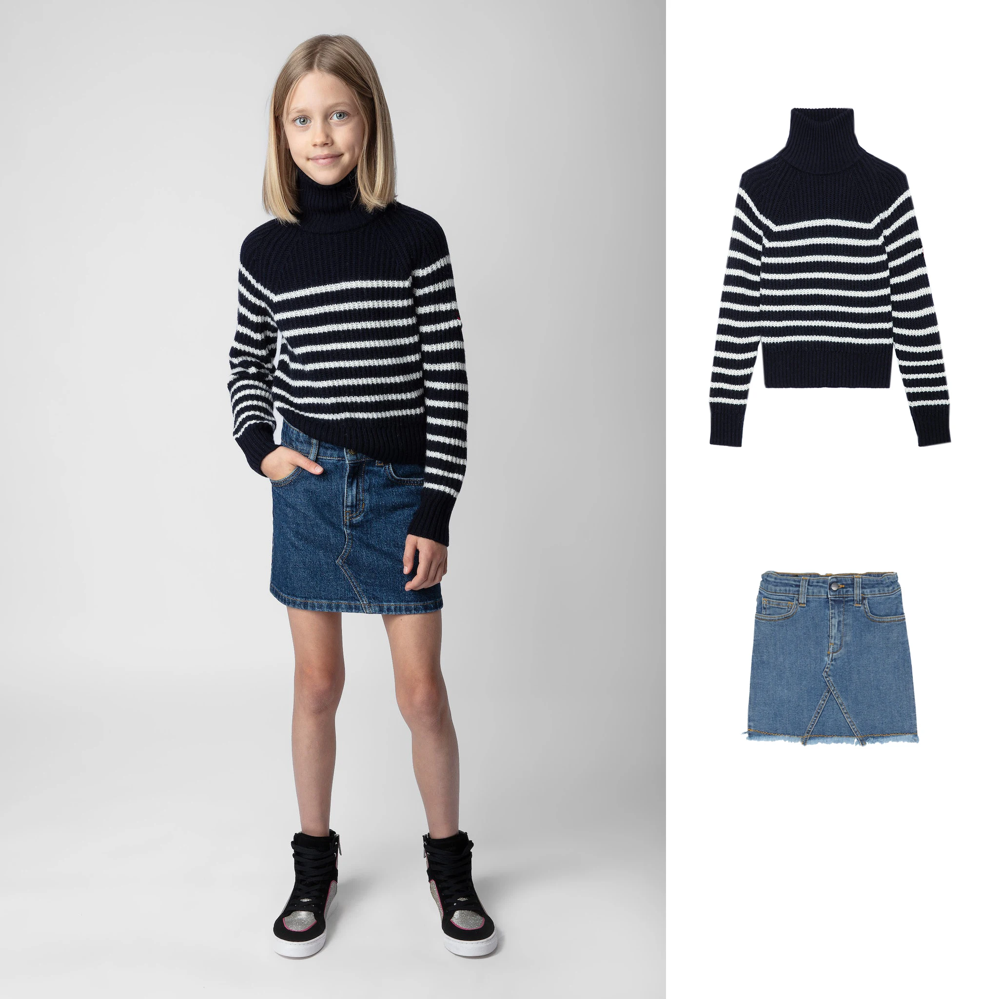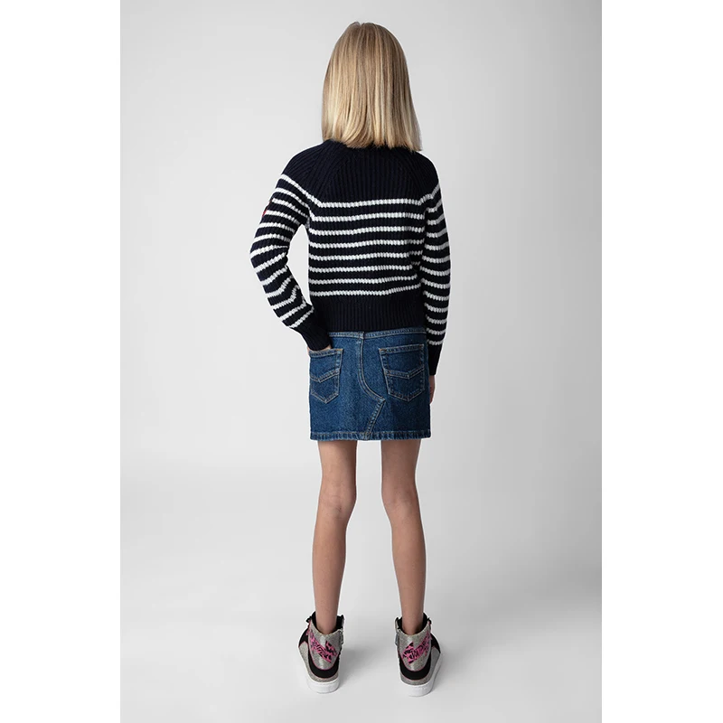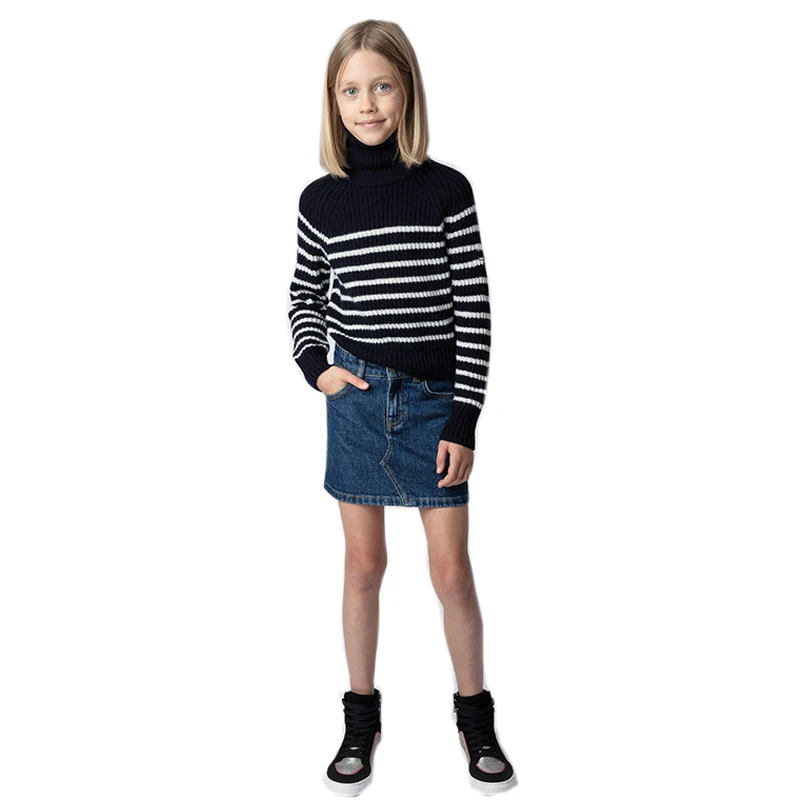 New Bestseller Launched OEM Manufacturer High-Neck Slim Fit Sweater Striped Denim Skirt Casual Clothing Set for Teenage Girls