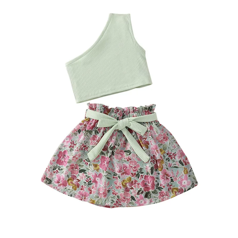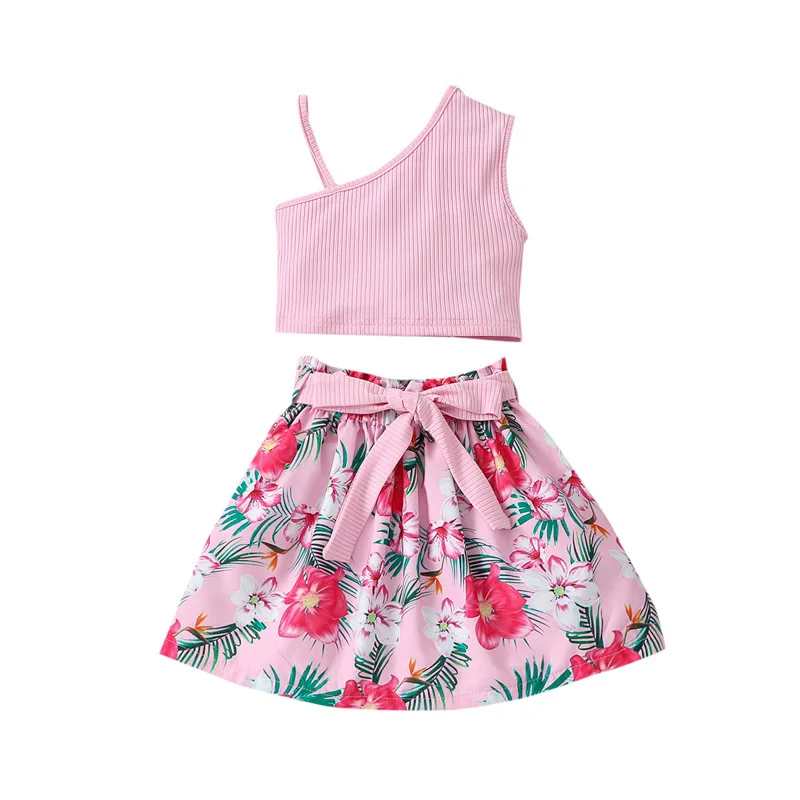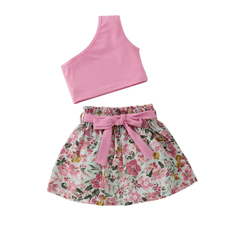 Girls Summer Apparel Set Customizable Cute Top and Skirt 3D Embroidery Fashion Outfit for Kids OEM