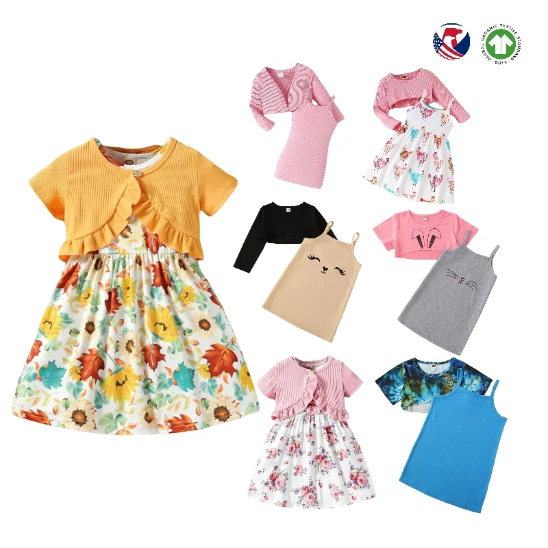 Kids Wholesale Dress Clothes Dress Children's Girls Fashion 2 Piece Clothing Sets