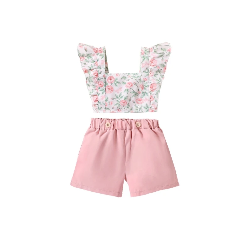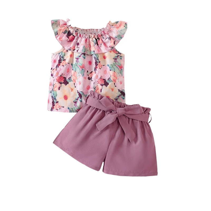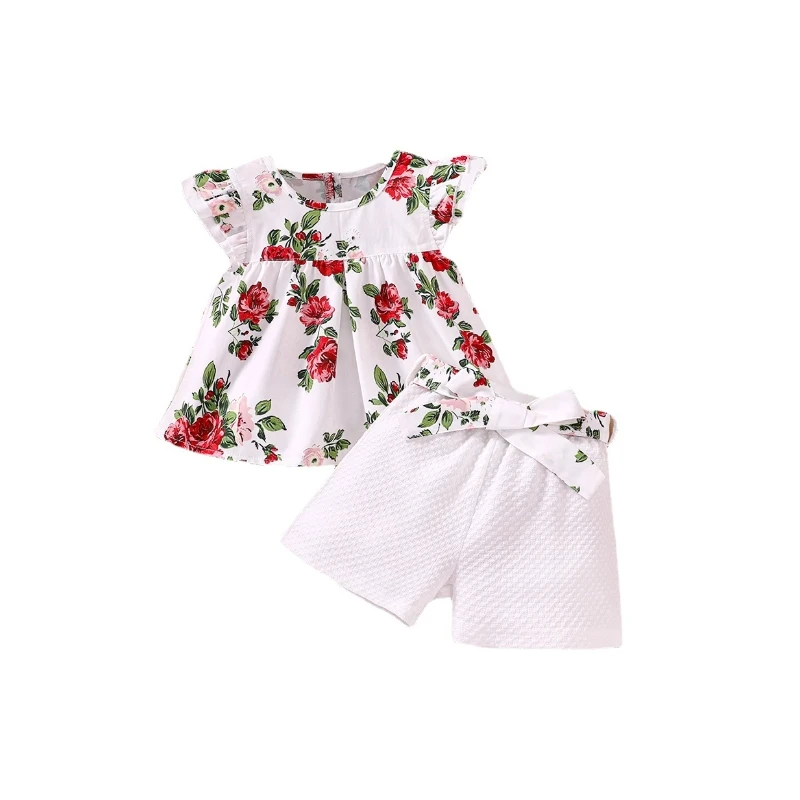 Toddler Girls Fashion Summer Clothing 2 Piece Sets New Summer Flower T-shirt Print Bow Skirt 2Pcs Baby Outfit
