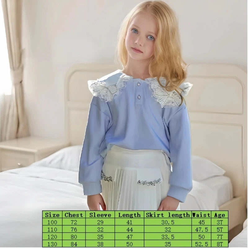Girl Fashion Children Long Sleeve Top Pleated Skirts Two Piece Girl Clothing Sets
