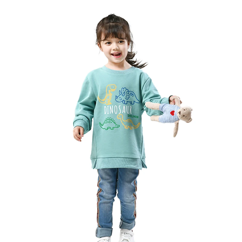 Children's Long Sleeve Top Apparel Customizable Plain Washed Ripped Tee Basic Layering Shirt Multi Colors