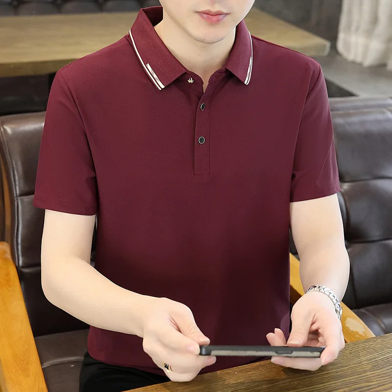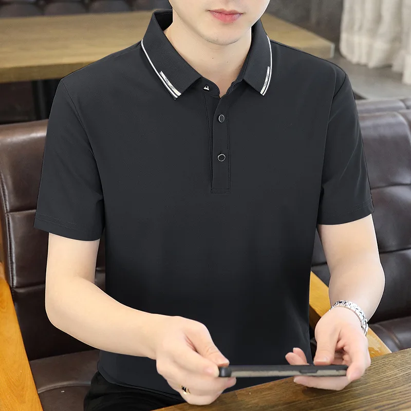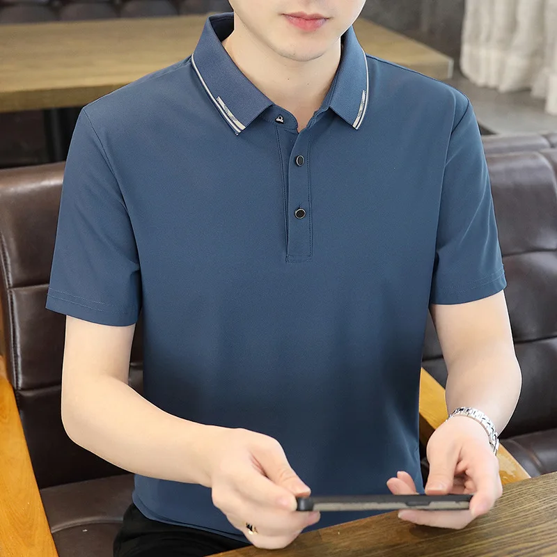 Summer Ice Silk Turn-Down Collar Short Sleeve Top Anti-Pilling Trendy Half Sleeve Solid Men's Polo Shirt
