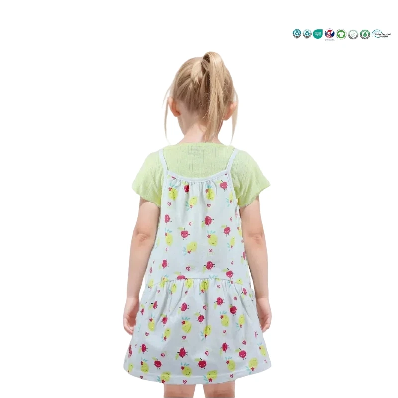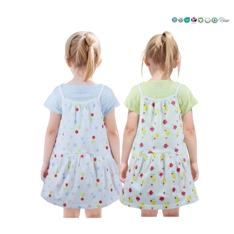 Girls' Two-Piece Clothing Set Cartoon Printed Dress with Crocheted Techniques and Bow Decoration ODM Supply