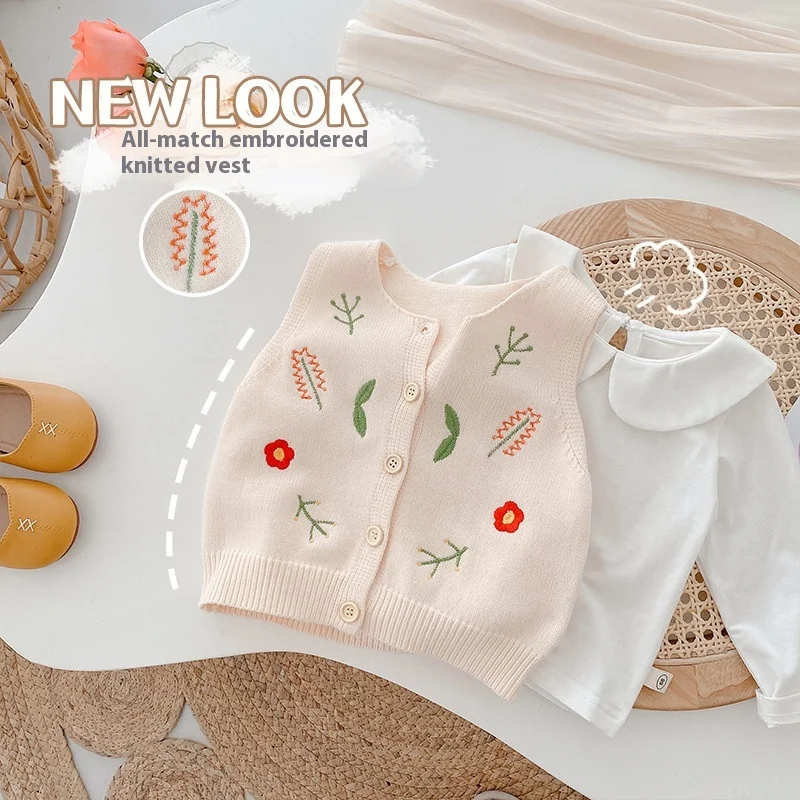 Autumn Jacquard Knitted Vest for Girls 0-5 Years Cardigan Infant Sweater Baby Vest