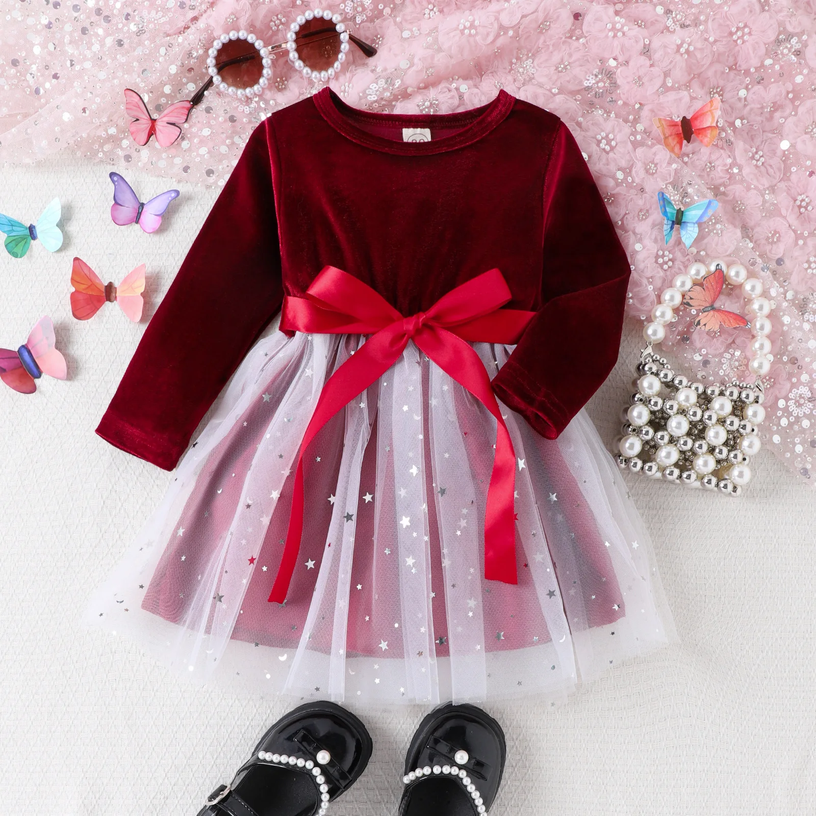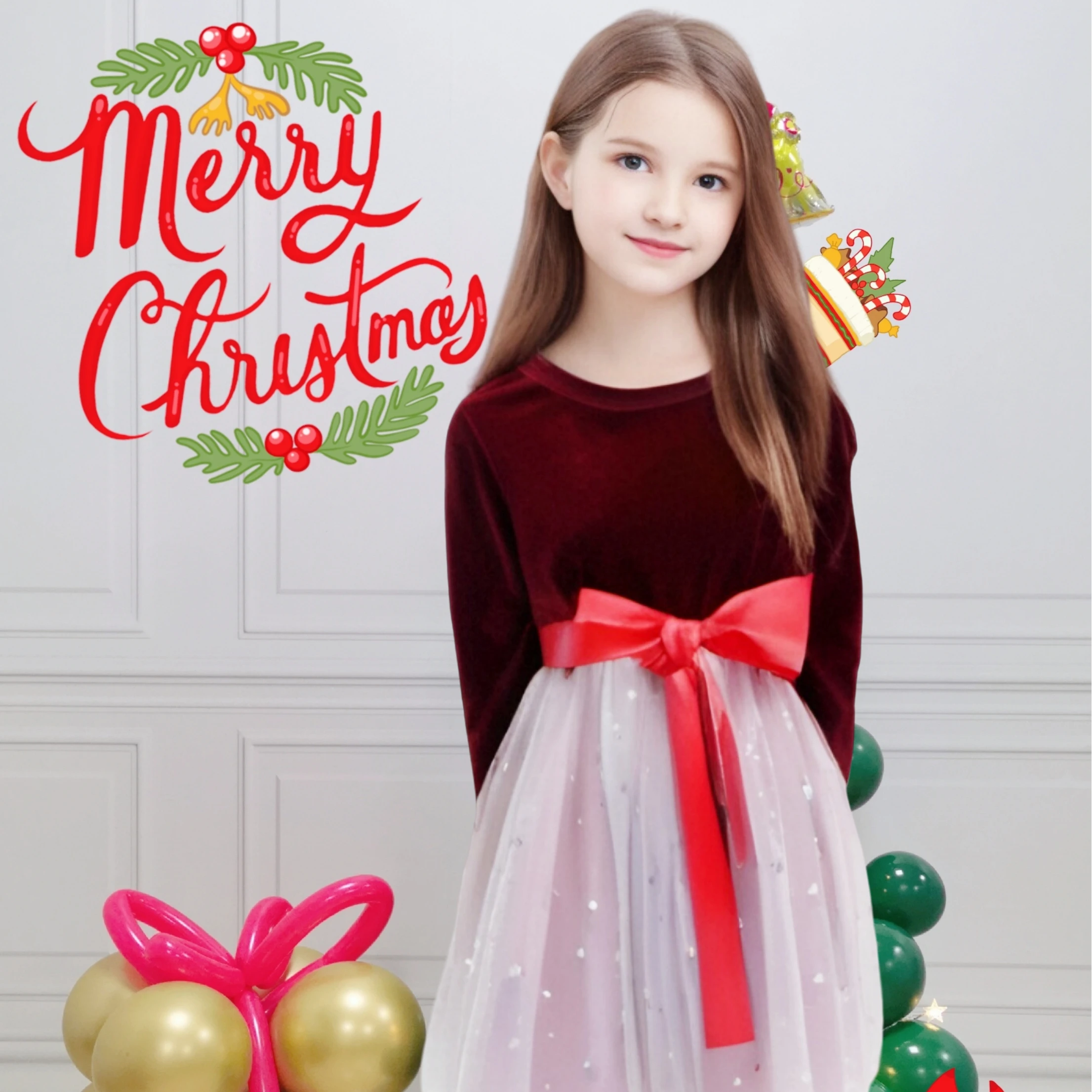 New Winter Spring Autumn Kids Clothes Long Sleeves Princess Girls Dresses Christmas Tulle Sweet Velvet Skirts ODM for Children