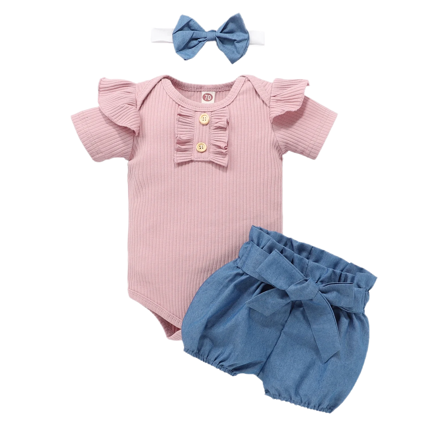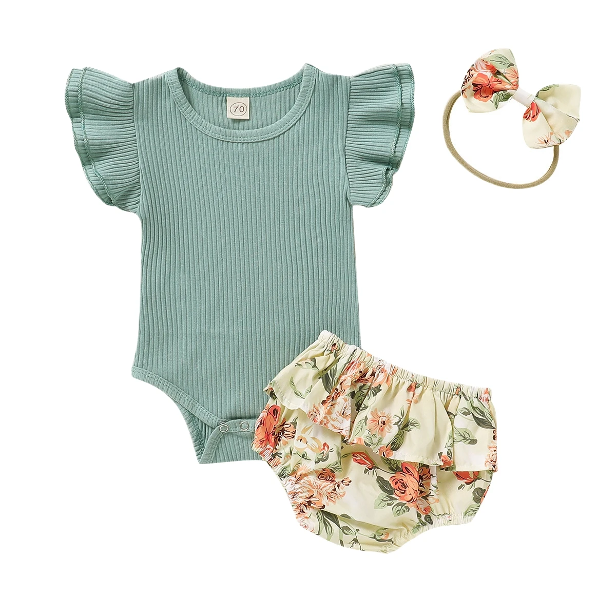 Newborn Baby Girls Fashion Set 3pcs Infant Floral Ruffle Romper Bodysuit and Pants Outfits