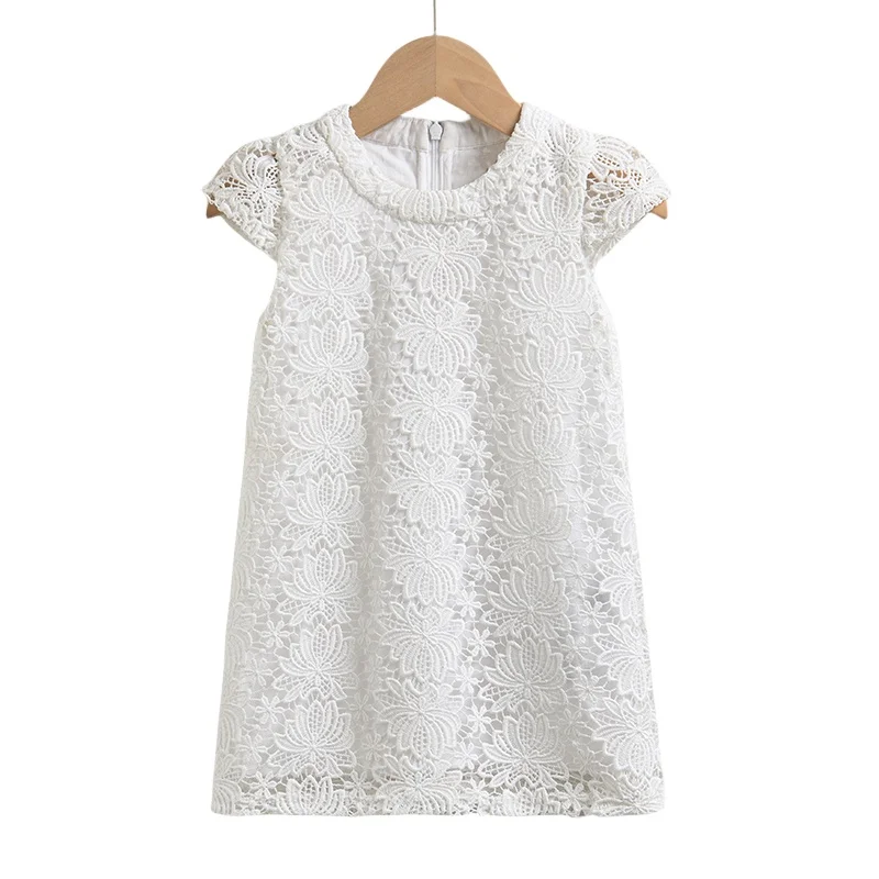 Cute Comfy Summer Pullover Dress for Baby Girls Casual Solid Pattern with Lace Zip ODM Children's Clothing
