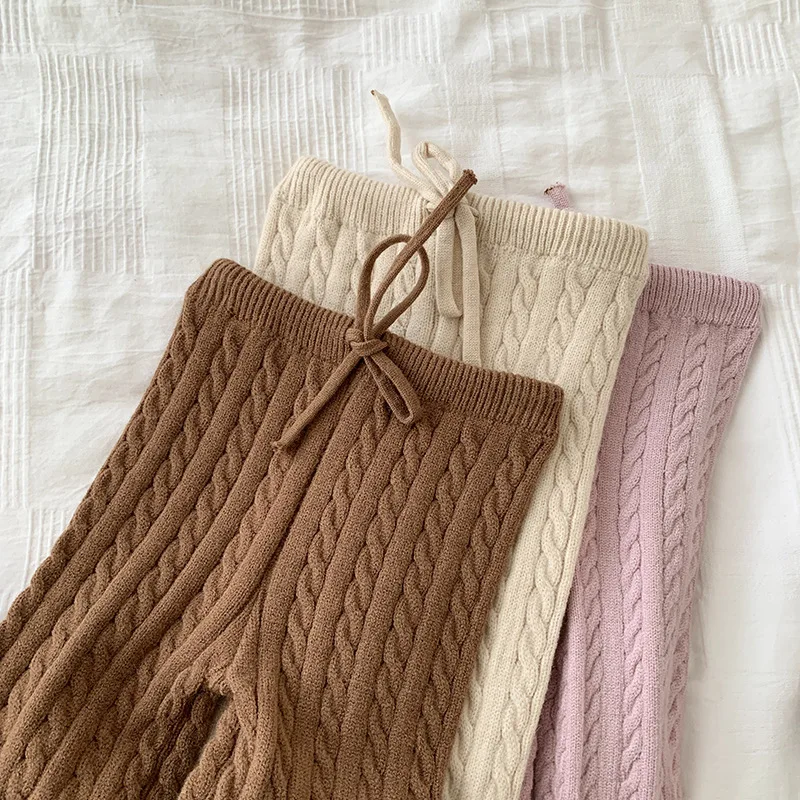 Autumn Trendy Cable Knit Cotton Sweater Solid O-Neck Boy Clothing Set Comfortable Baby Clothes