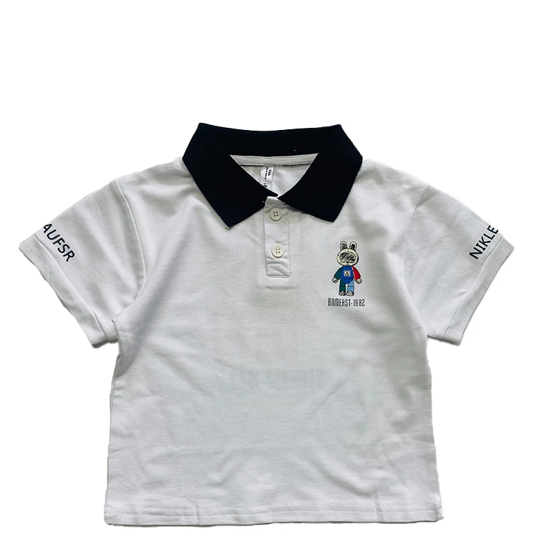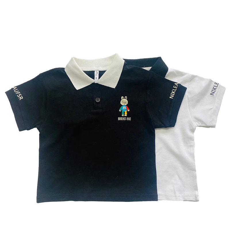 RTS Unisex Kids T-Shirts Solid Color Comfort Cotton Casual Short Sleeve Turtleneck Washed for Boys Girls Featuring Cartoon