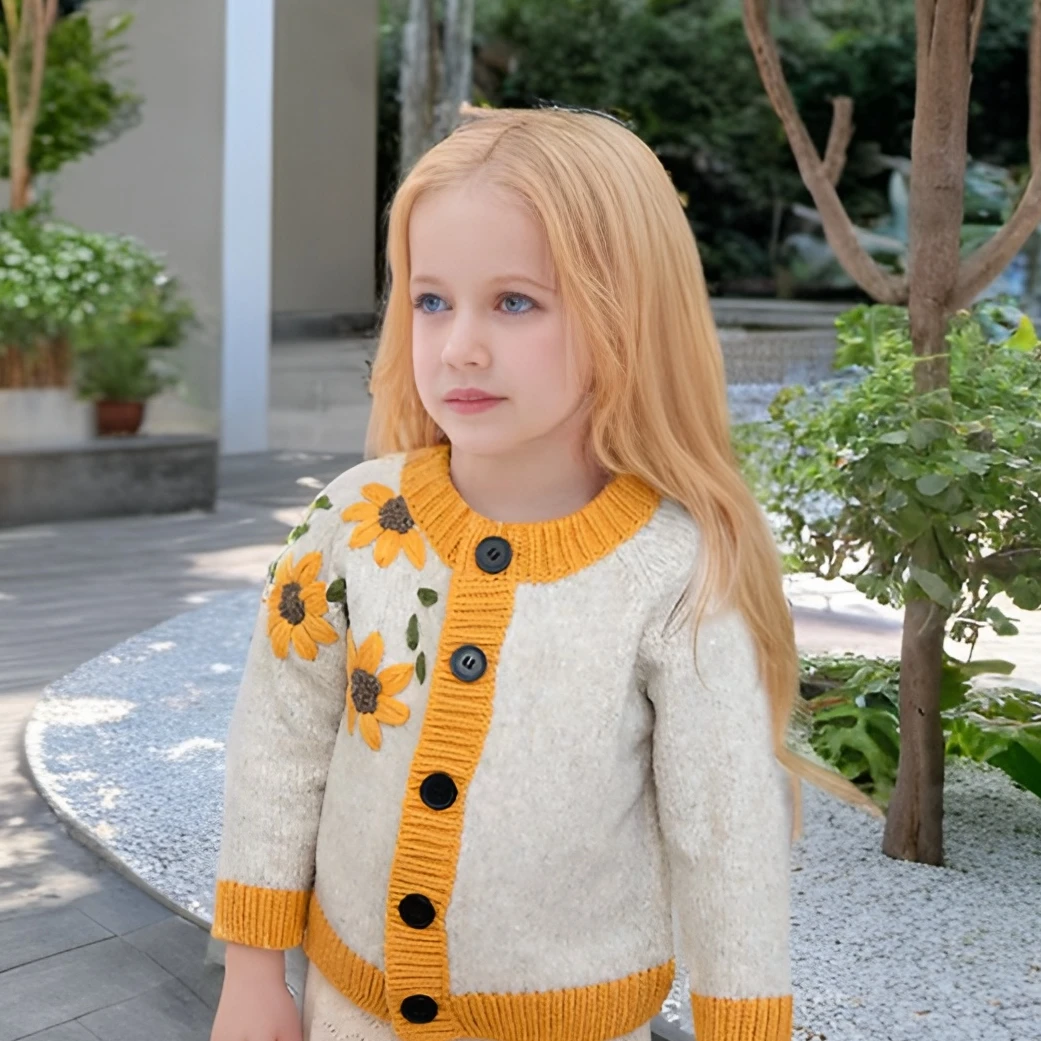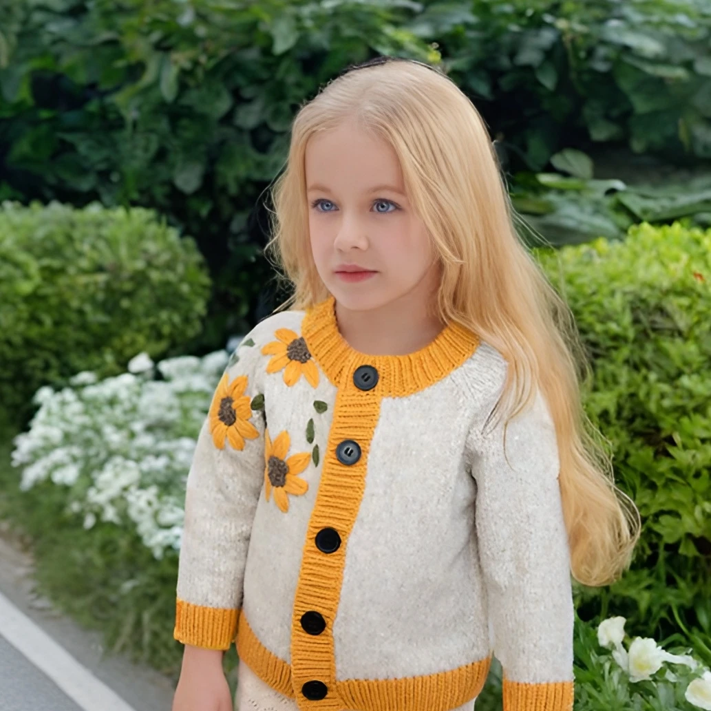 Children's Sweater 2022 Autumn New Foreign Style Cardigan Crocheted Female Treasure Hand-embroidered Cotton Girl Warm