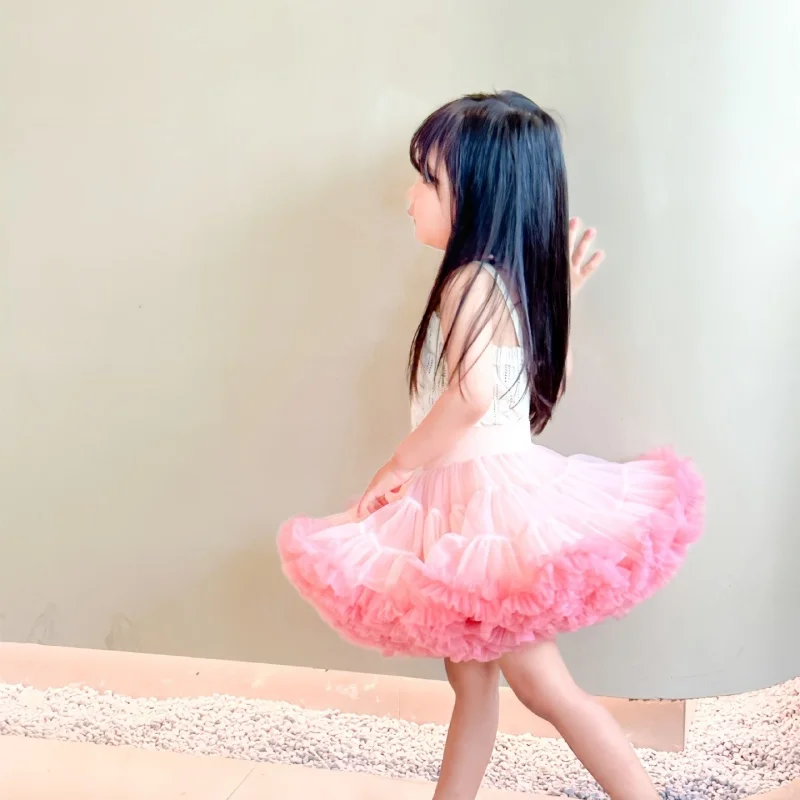 Autumn Winter Children's Ball Gown Tutu Skirt Little Girls' Breathable Chiffon Mini Dress for Dance