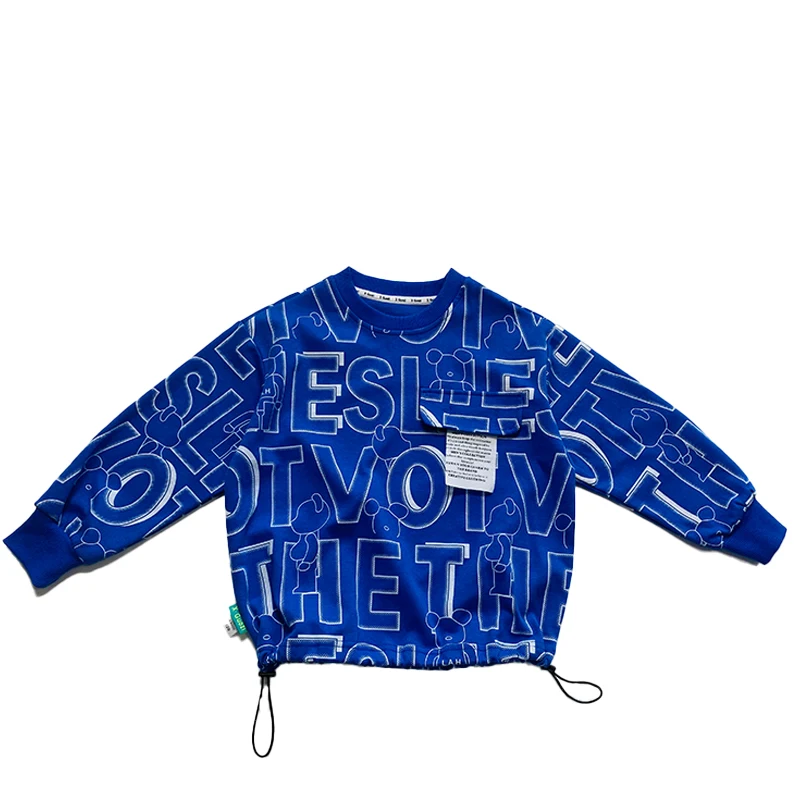 Autumn Boys Cotton T-Shirt with Long Sleeve Crew Neck Casual Travel Print Brand Label Washed Technique Plaid Pattern
