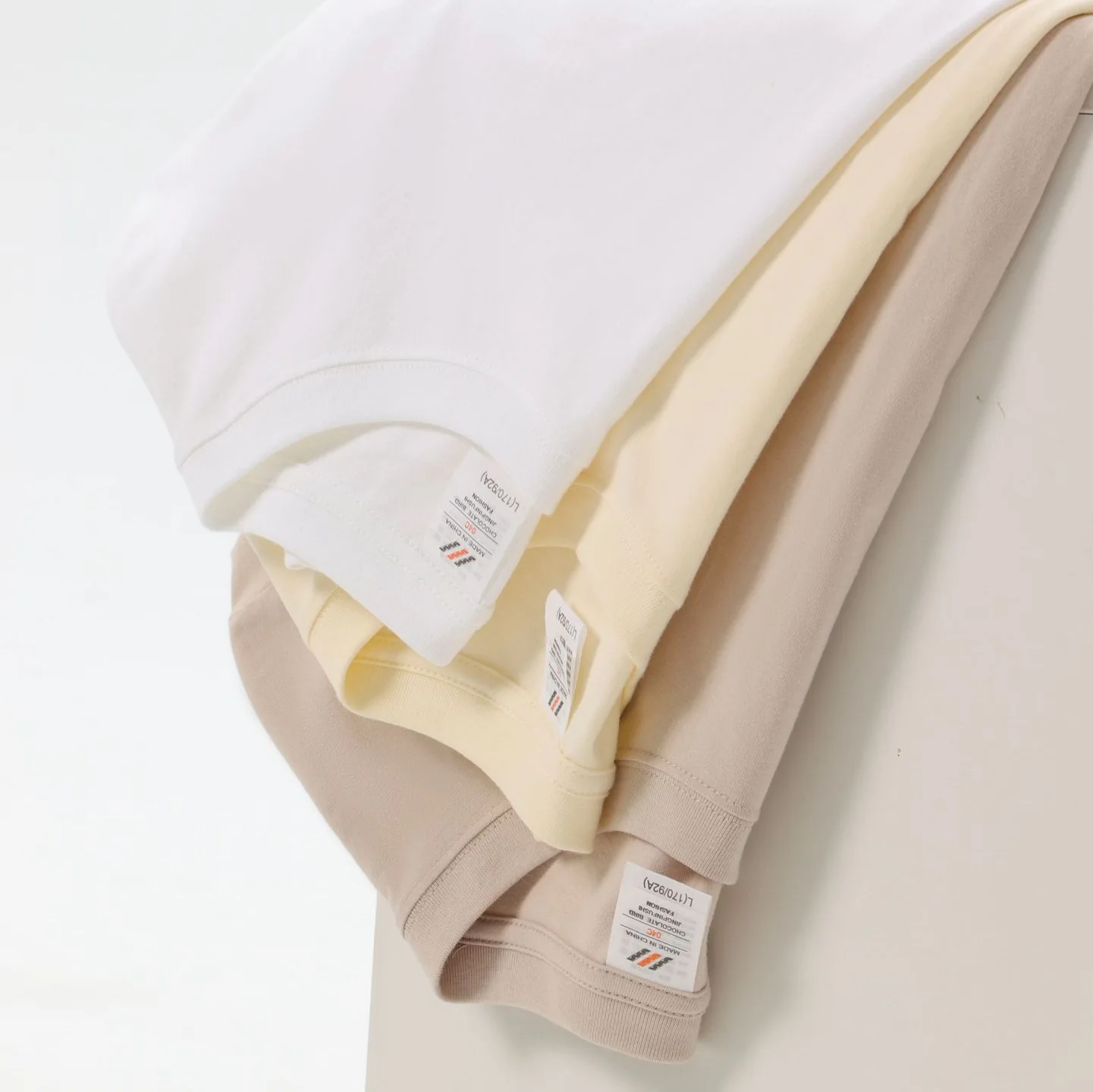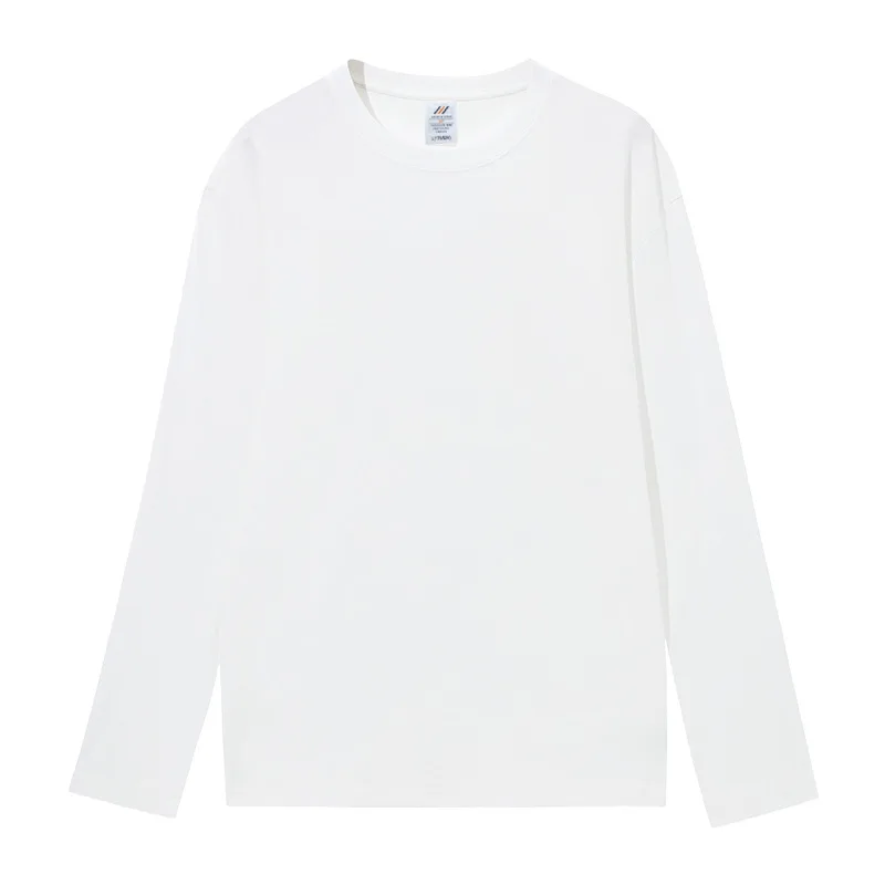 Trendy Brand 230g 100% Cotton Knitted Solid Anti-Pilling Long Sleeve Loose Casual Men's T-Shirt