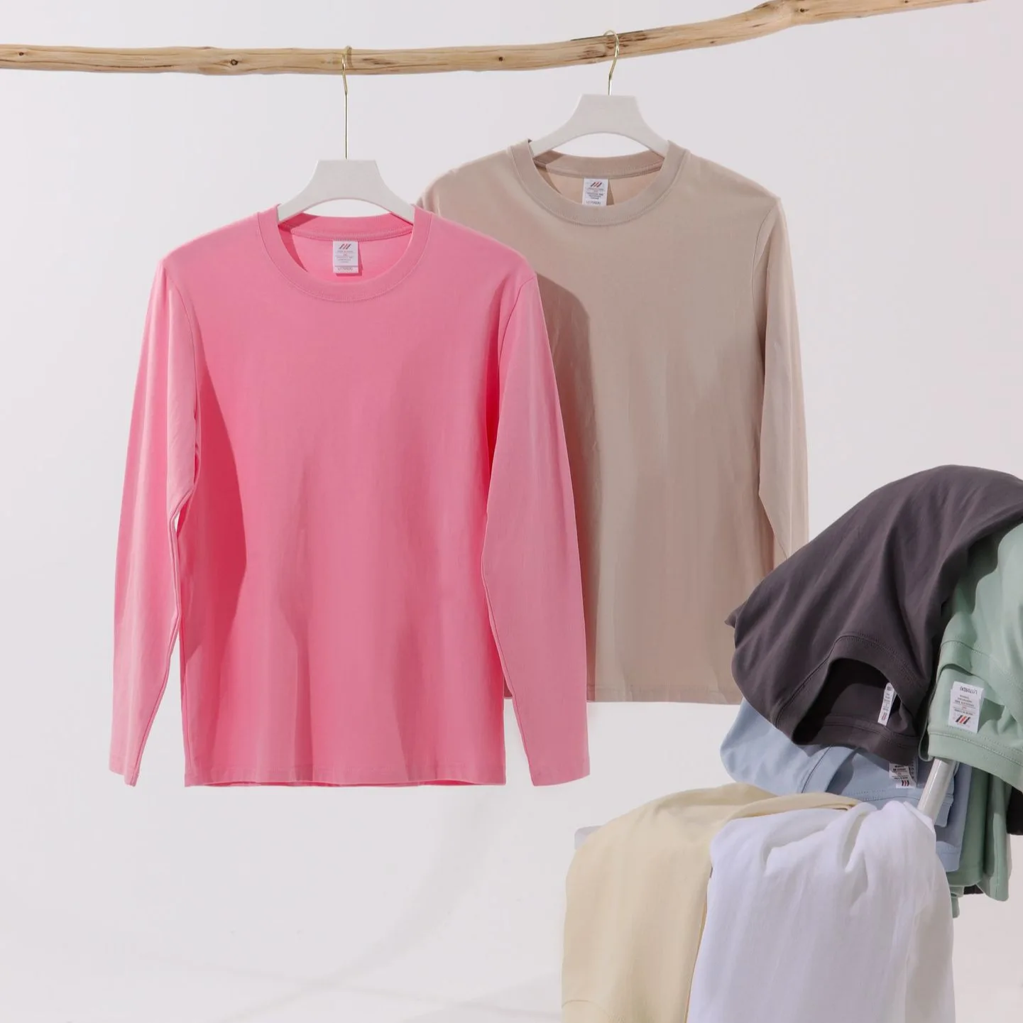 Children's Long Sleeve Top Apparel Customizable 230g Cotton Basic Shirt Layering Tee Plain Colors OEM
