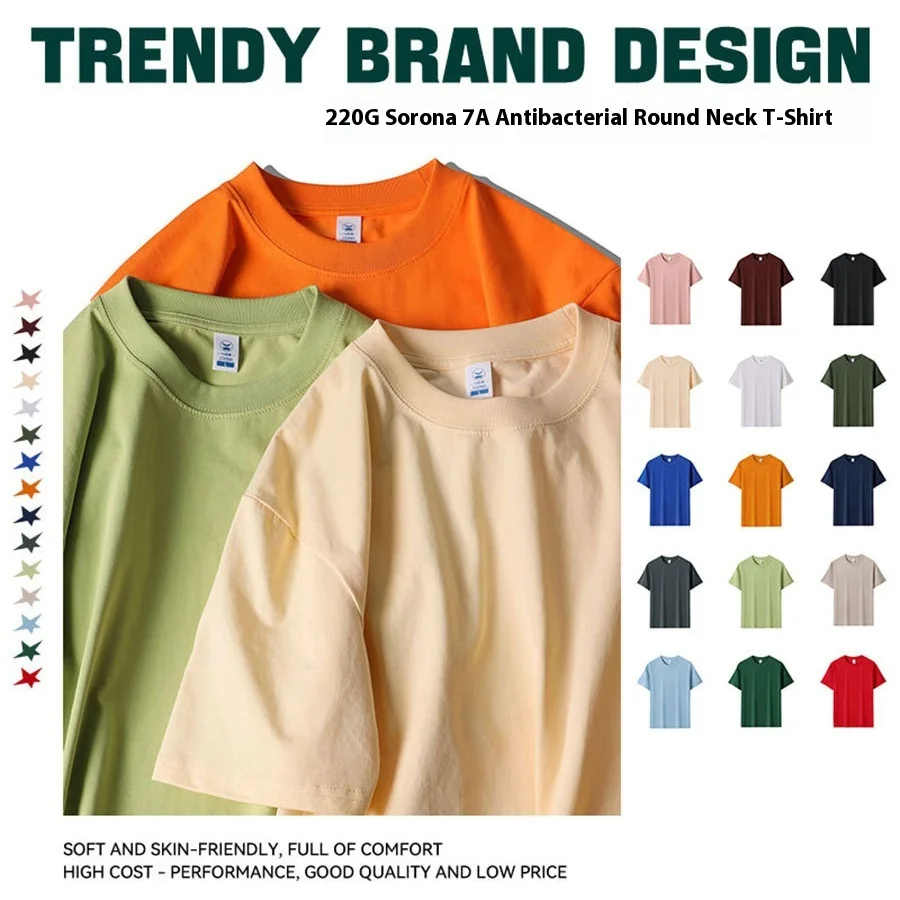 Wholesale Summer 220g Sorona 7A Antibacterial Short-Sleeve Basic Solid Cool Casual Basic Men's T-Shirt