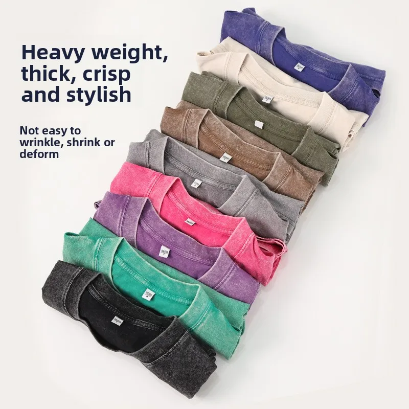 Vintage 230g Pure Cotton Batik Design Washed Effect Loose Fit Drop Shoulder Short Sleeve Men T-Shirt