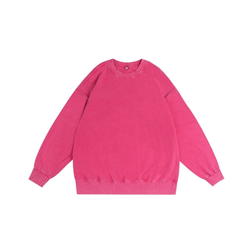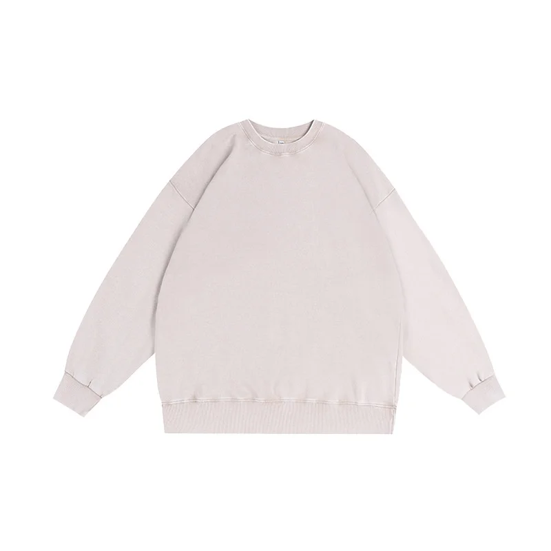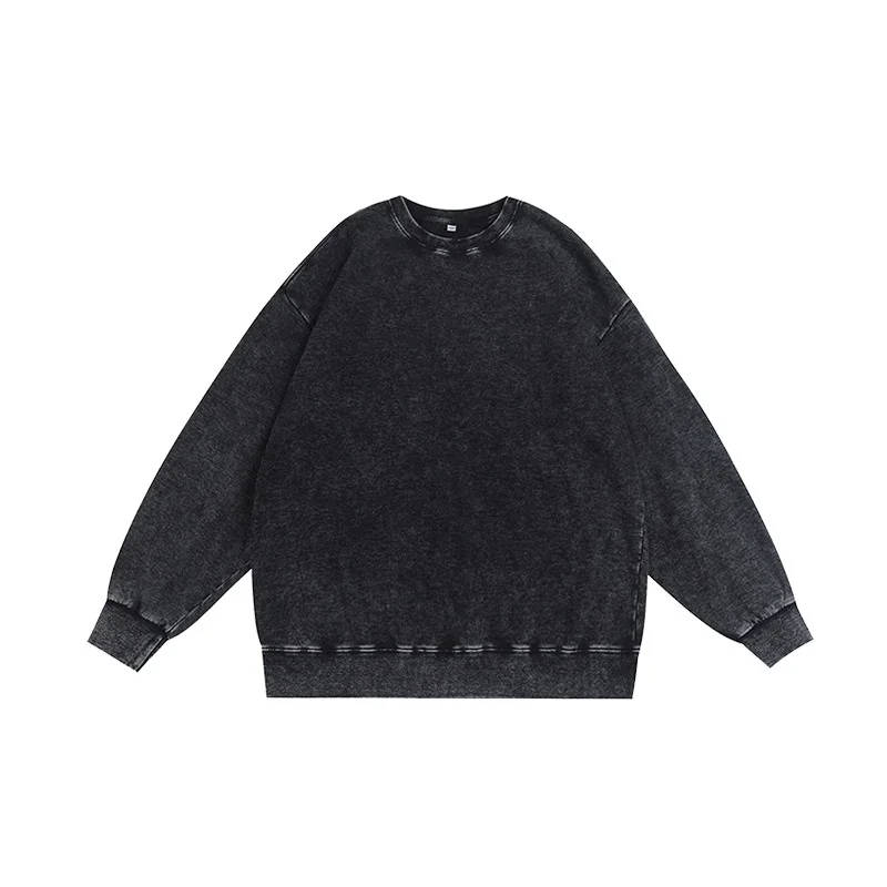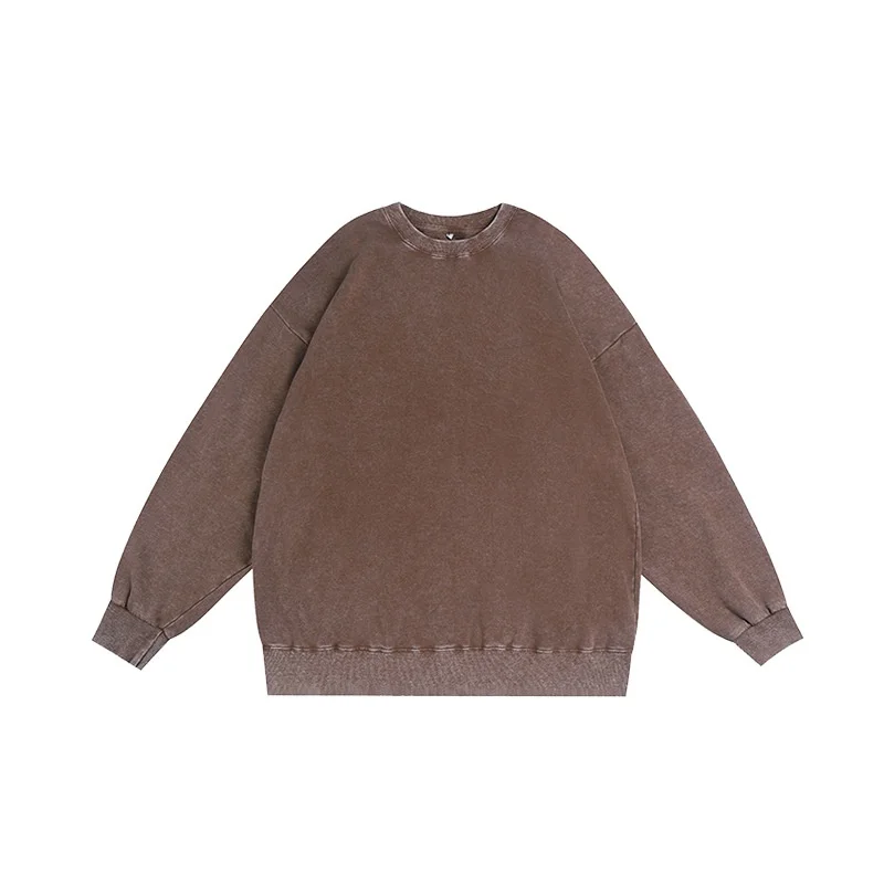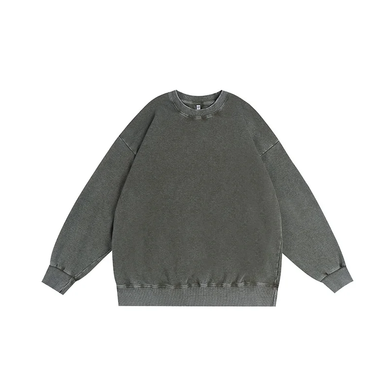 360g Washed Vintage Crewneck Retro Printed Logo 100% Cotton Solid Pattern Men Sweatshirt