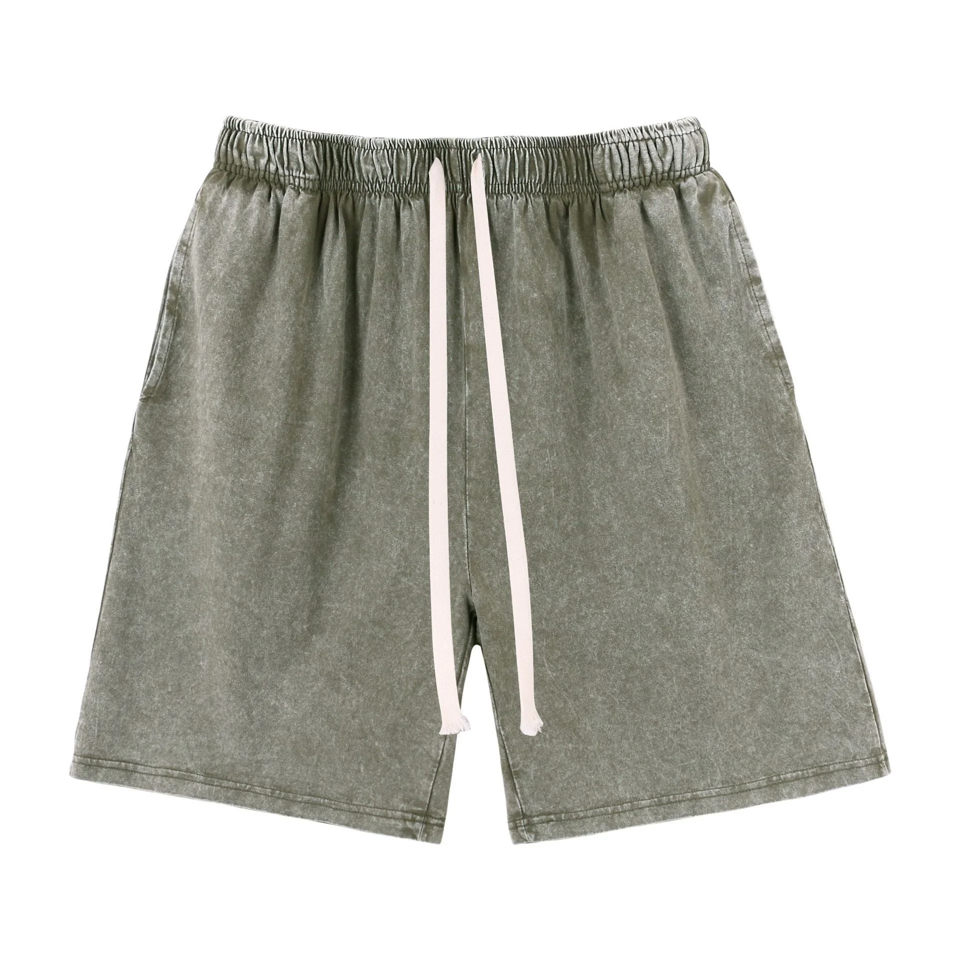 Trendy Summer Casual 250g Pure Cotton Washed Vintage Retro Solid Men's Shorts